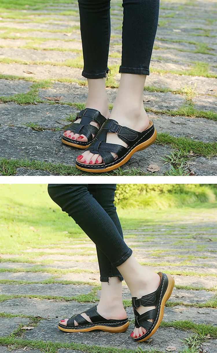 Босоножки женские ортопедические на танкетке, винтажные сандалии на нескользящей подошве, повседневная обувь на платформе в ретро стиле, лето