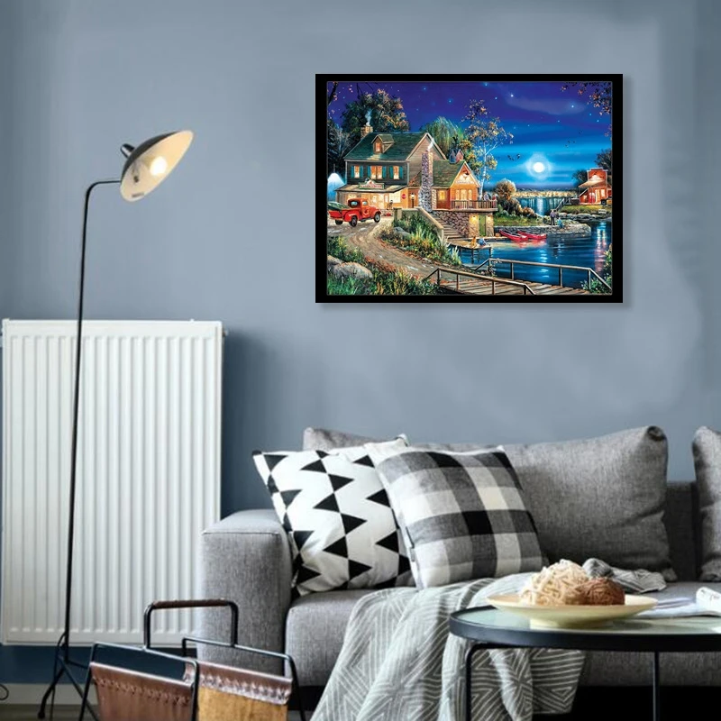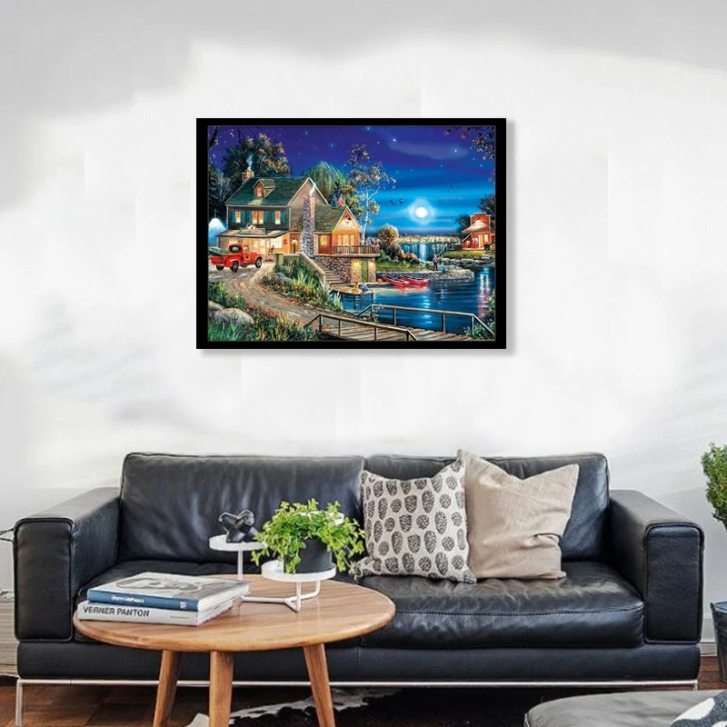 Алмазная 5D картина сделай сам, пейзаж, домик, полное сверло, круглая, украшение для дома, вышивка, картина, ручная работа, Набор для творчества