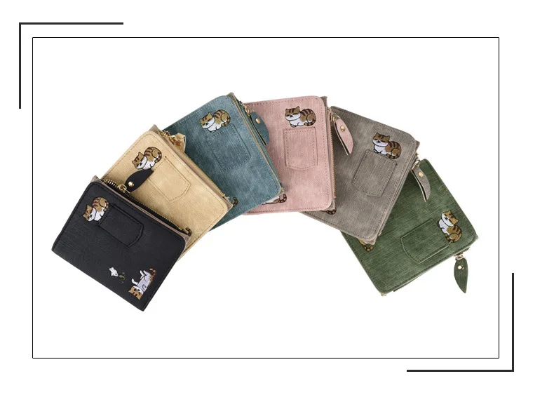 Женский короткий кошелек с вышивкой в виде кошки, 1 шт., кошелек на молнии для монет, короткий женский кошелек, милый мини-кошелек с держателем для карт, клатч для девочек