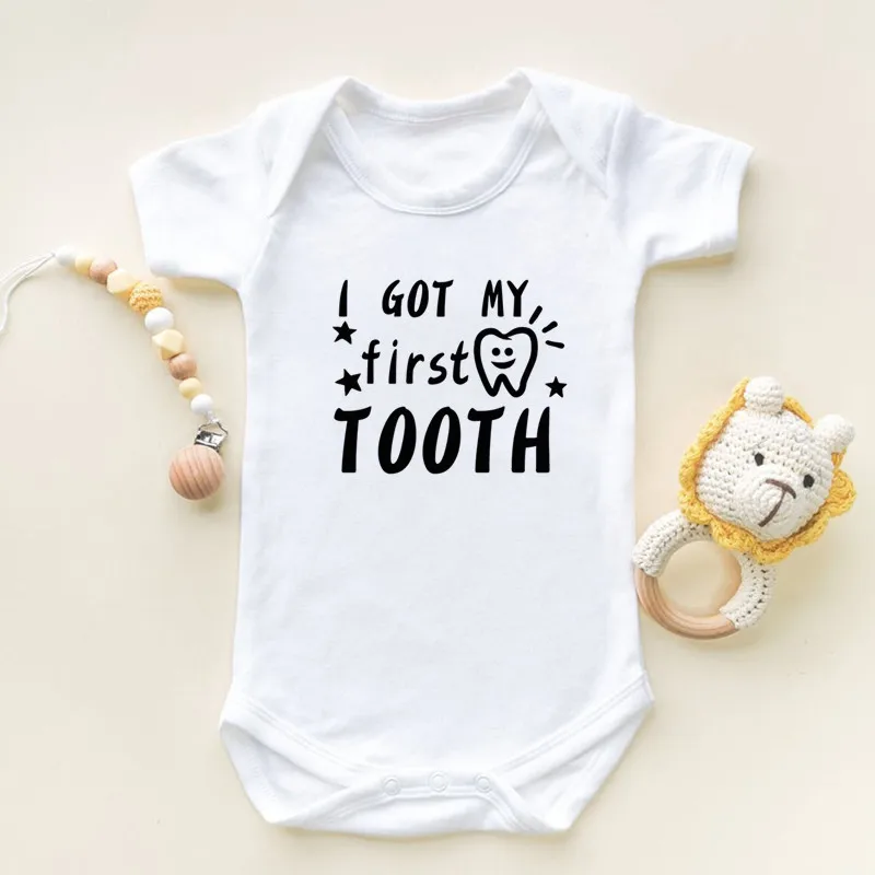 Детский хлопковый комбинезон с коротким рукавом и принтом зубов