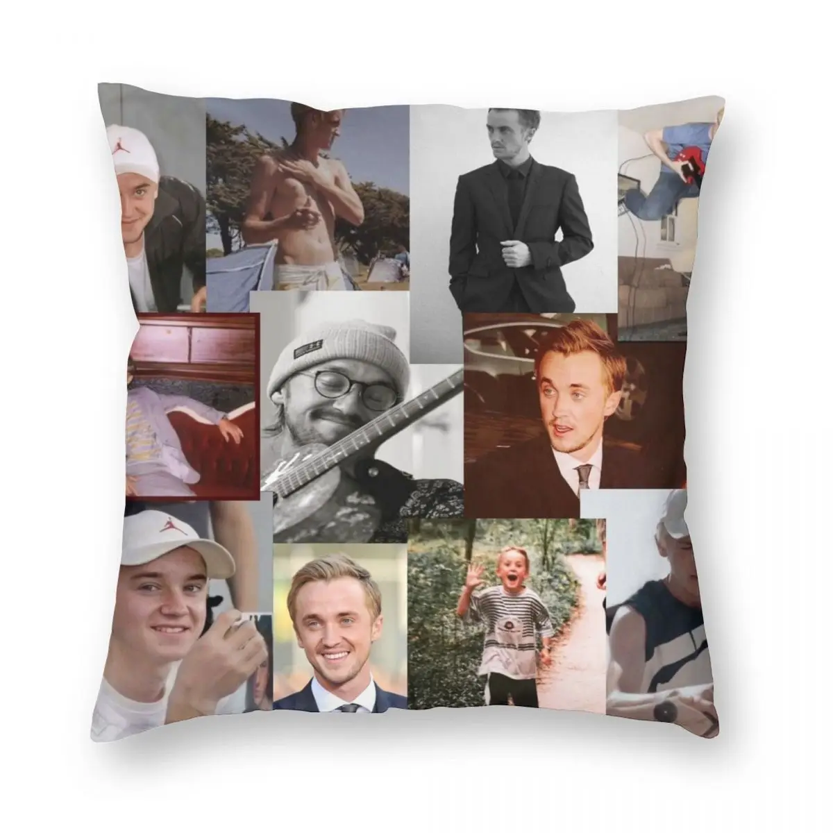 Чехол для подушки с коллажем Tom Felton, полиэстеровый льняной бархатный декоративный чехол на молнии с принтом, чехол для домашней подушки, чехол для подушки, оптовая продажа, 18 дюймов