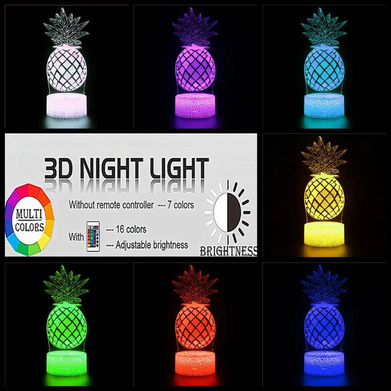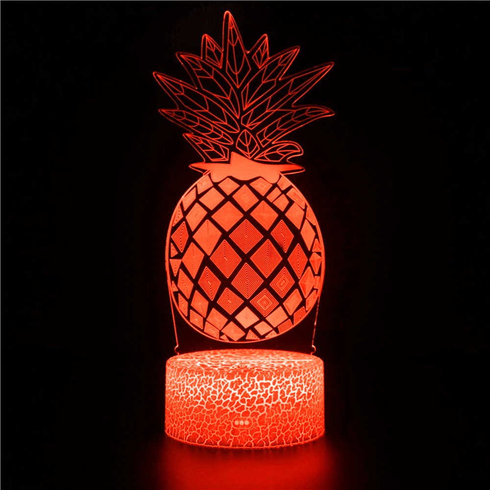 3D ночной Светильник, ананас, золотистый, цветной меняющий цвет, креативный датчик для дома, спальни, сенсорная модель, статуя, подарок, светодиодный свет