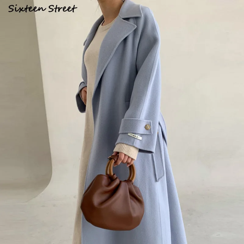 Женское шерстяное пальто, Элегантное Длинное однобортное пальто с п...
