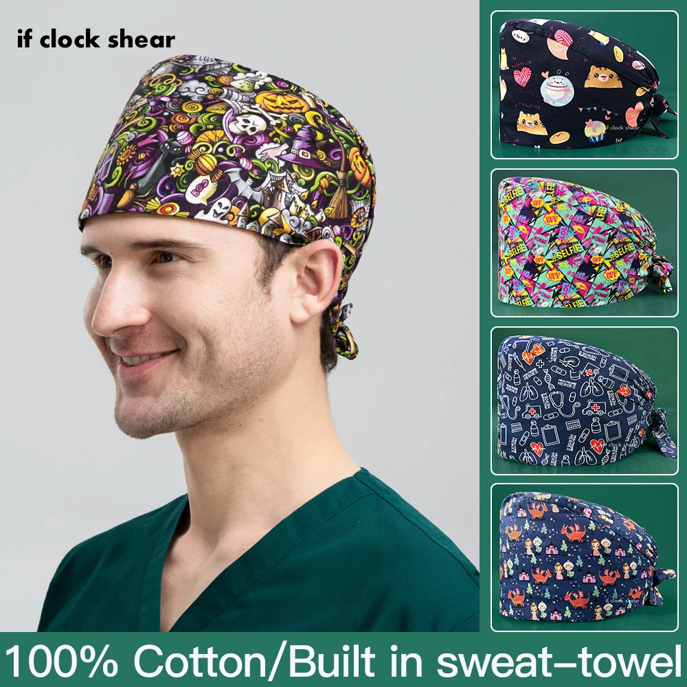 Впитывающая пот Модная хлопковая шапка с принтом для медсестер шапк...
