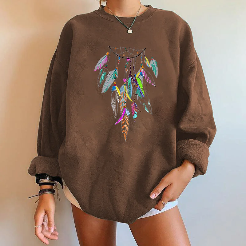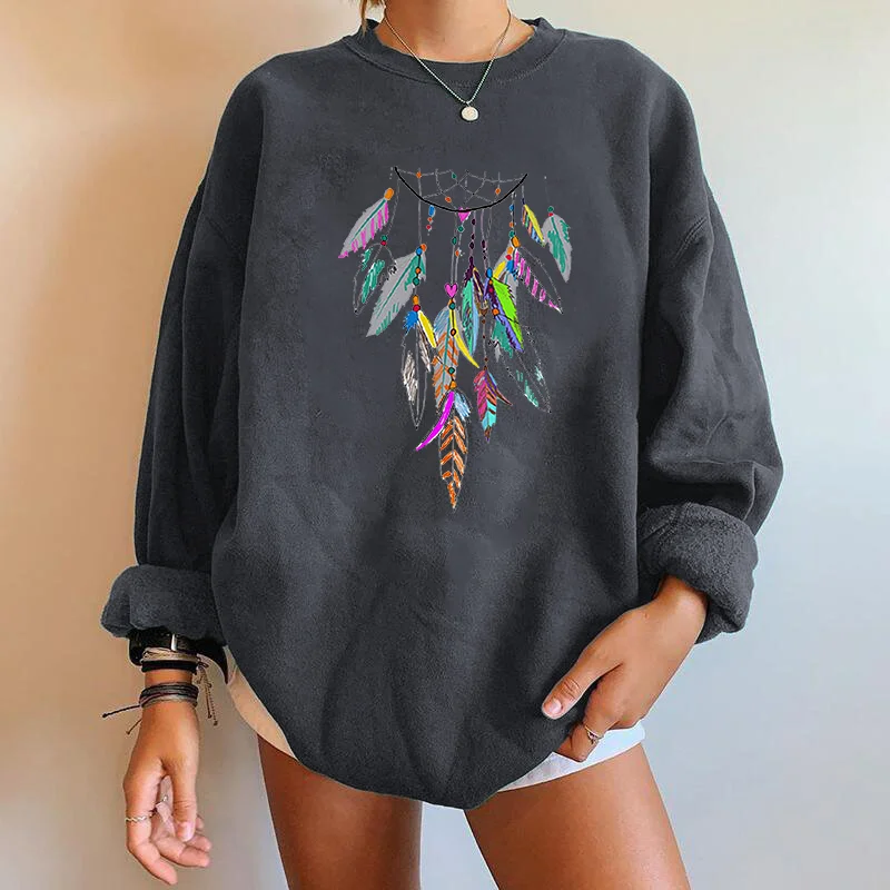 PatternHarajuku Vintage Feather Print Women Sweatshirts