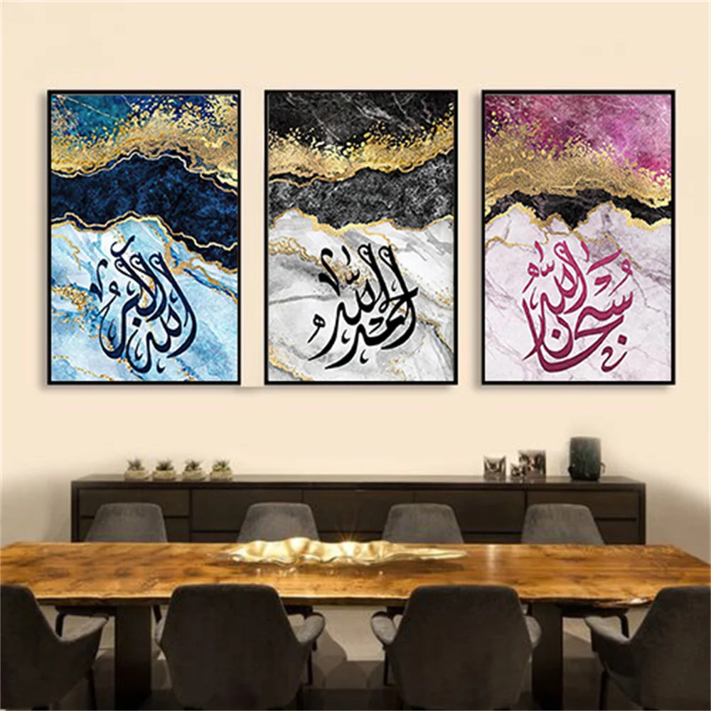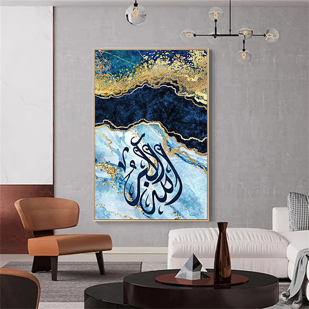 Абстрактная Настенная картина с изображением исламского Корана, Настенная картина из золотой фольги для комнаты, мусульманская религия, домашний декор