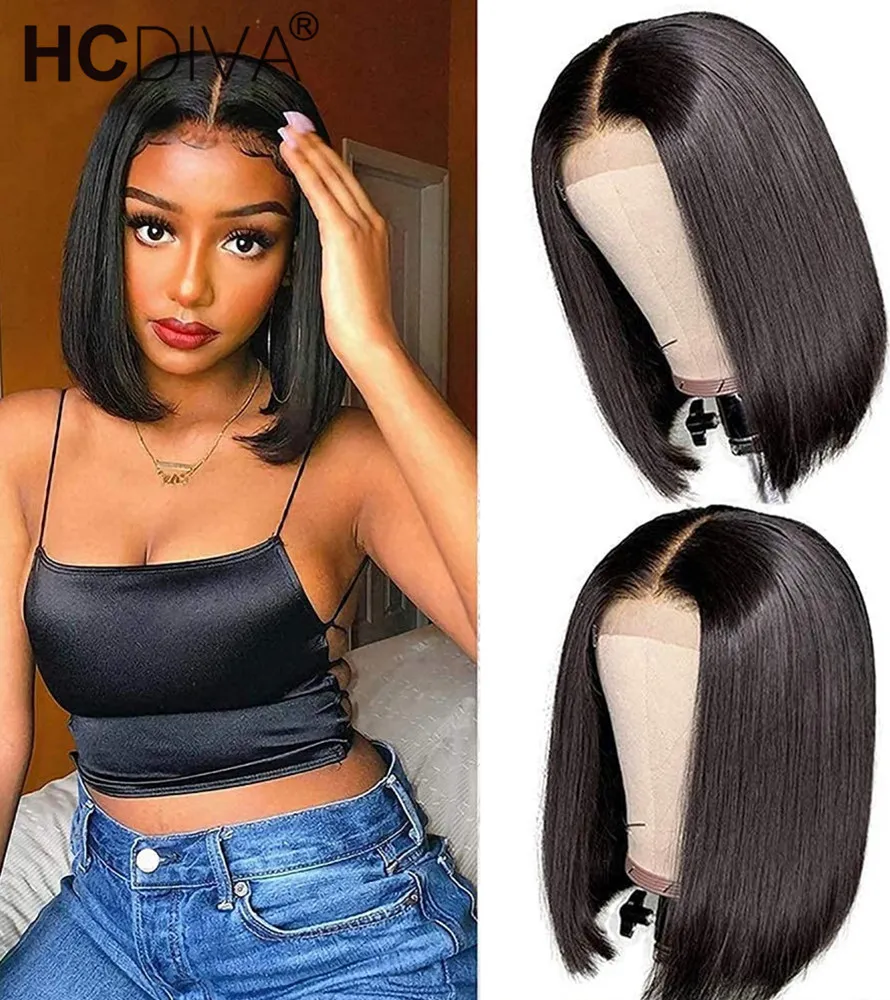 Короткие парики боб, прямые парики из человеческих волос с кружевно...