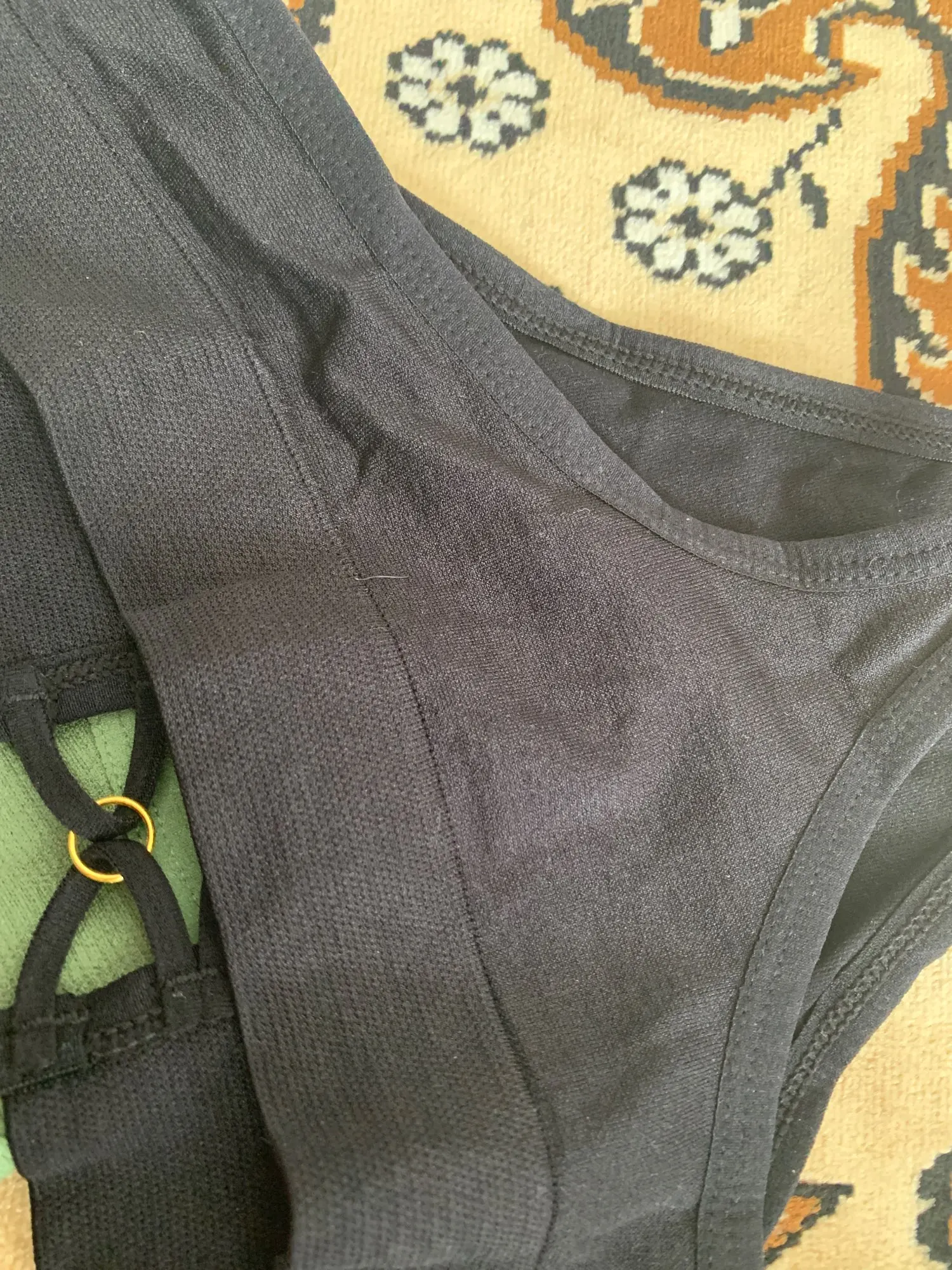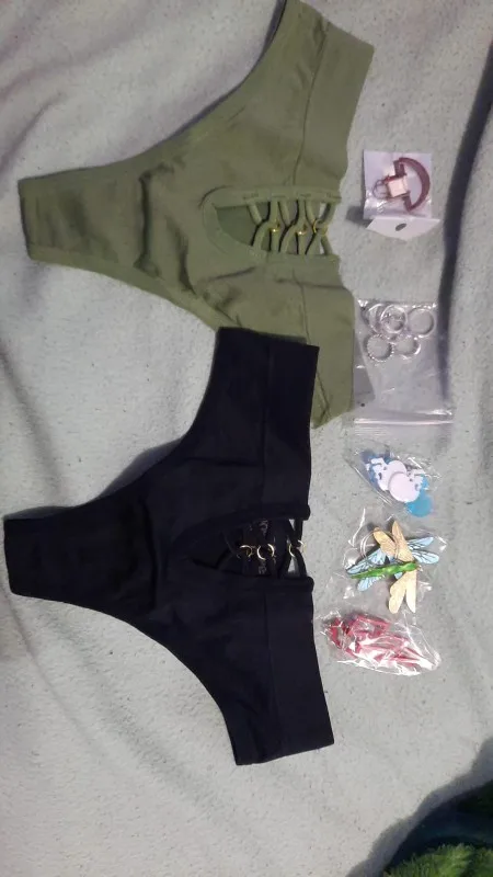 Размер М на бедра 102 см хорошо подошли. Трусики интересно смотрятся. Только вот белые хреново прошиты, нитки торчат. С черными все хорошо