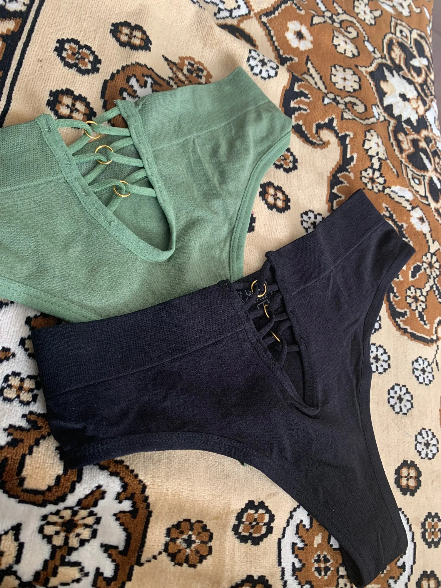 Мой фасончик). Высокая посадка, мягкий, похоже натуральный материал, широкая в меру тугая резинка. В общем, стринги очень, очень мне понравились, удобно. На размер 44 взяла М, - как влитые. Цвета, тускловаты, я брала со шнуровкой впереди жёлтые и зелёные (это скорее болотного цвета-зелёные). Вот цвета, мне не понравились. В стринги замечательные. Доставка почти 2 месяца.