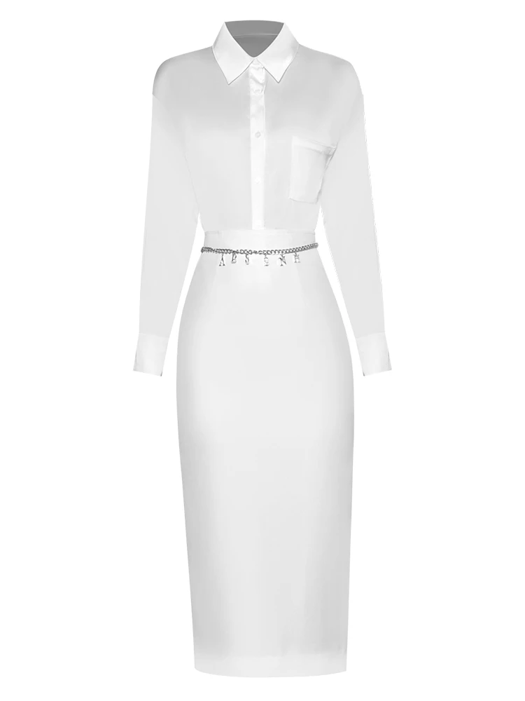 MoaaYina, модный осенний костюм с белыми юбками, женские однобортные рубашки с отложным воротником + Облегающие юбки миди, комплект из 2 предметов