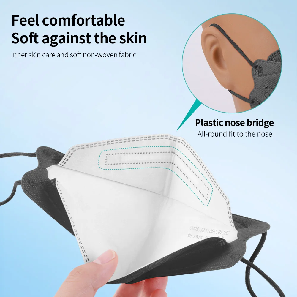 50 шт., сертифицированные черные маски ffp2 CE fpp2, маски kn95 для мужчин и женщин, FFP2MASK