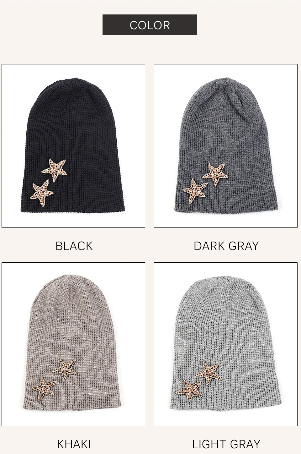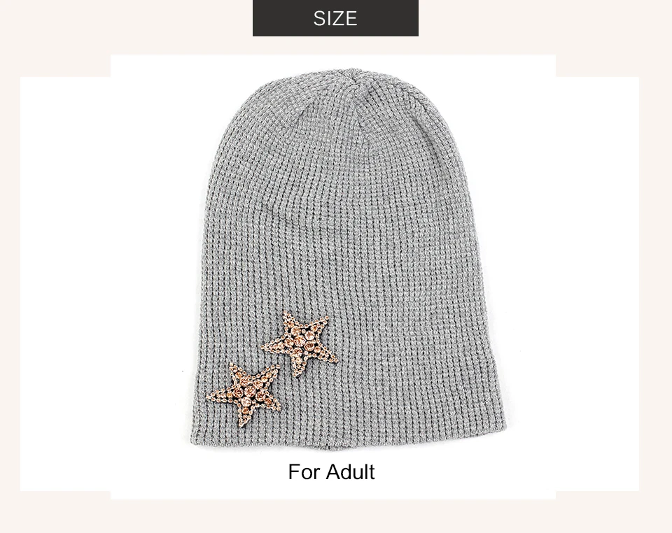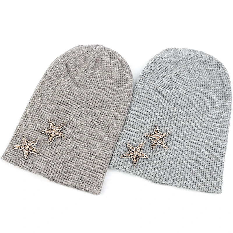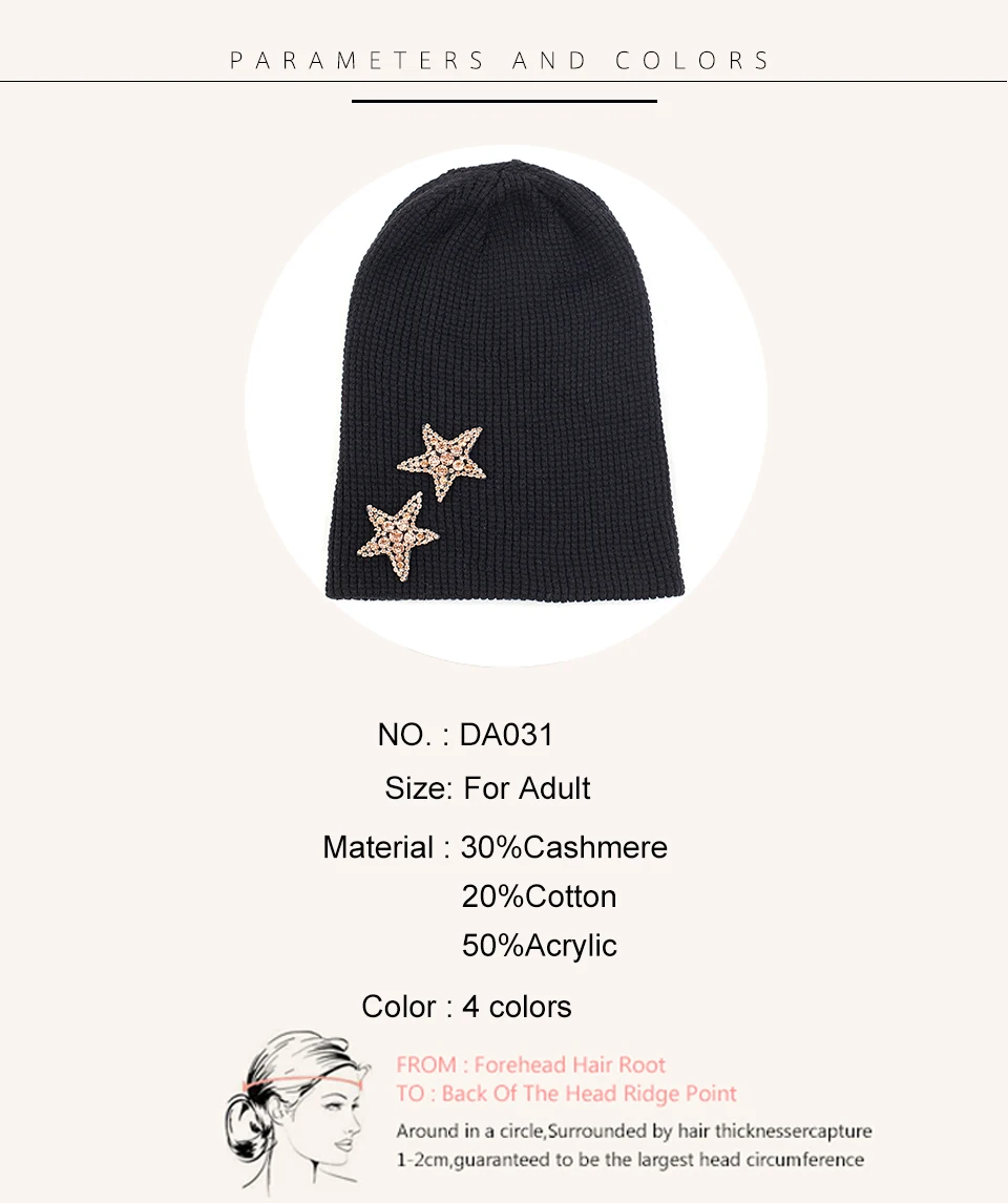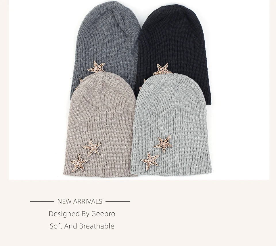 Geebro Женская кашемировая шапка 2 бриллианта звезды стразы аксессуары шляпа мягкая теплая шапка Череп дамские шапочки пуловер шляпы