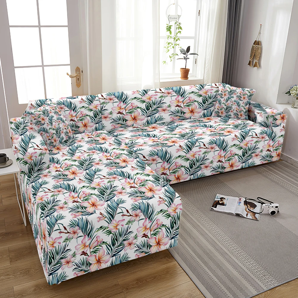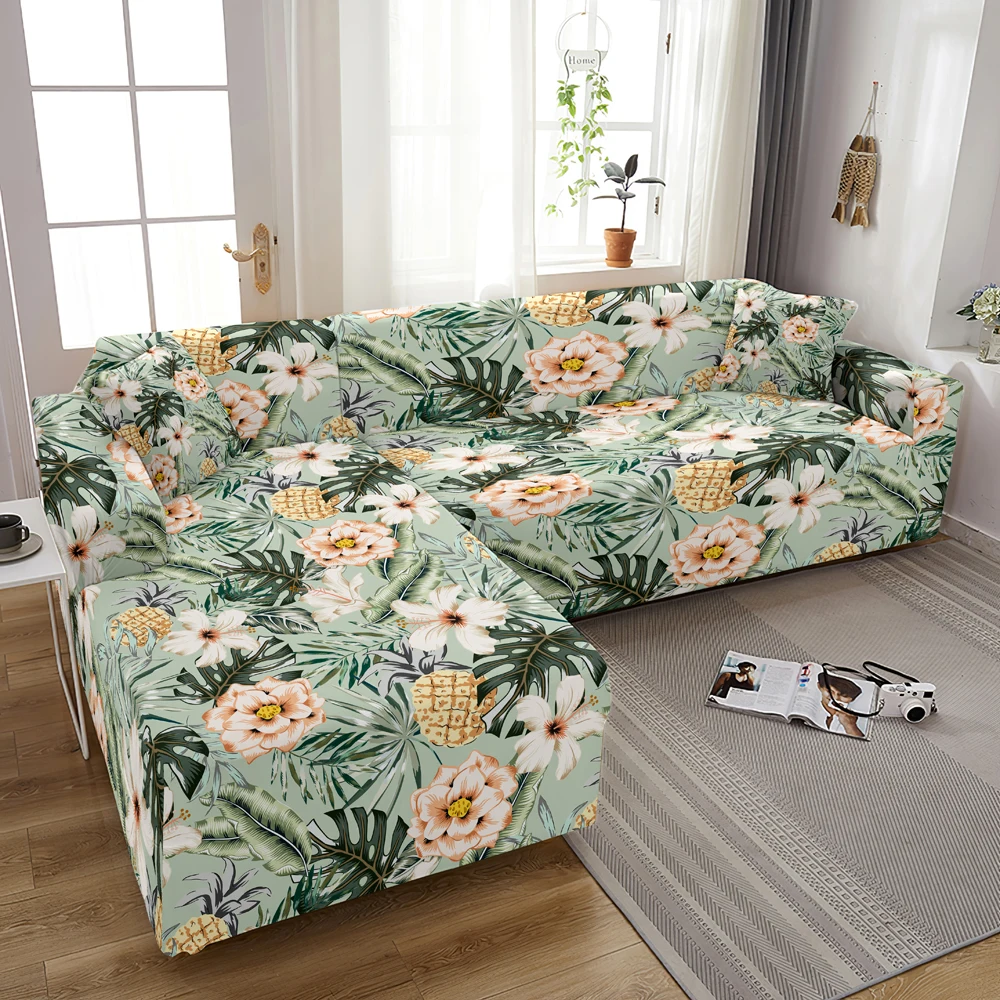 Чехол для углового дивана с тропическими листьями, эластичный чехол для дивана с цветочным рисунком, эластичные Чехлы для дивана в гостиной