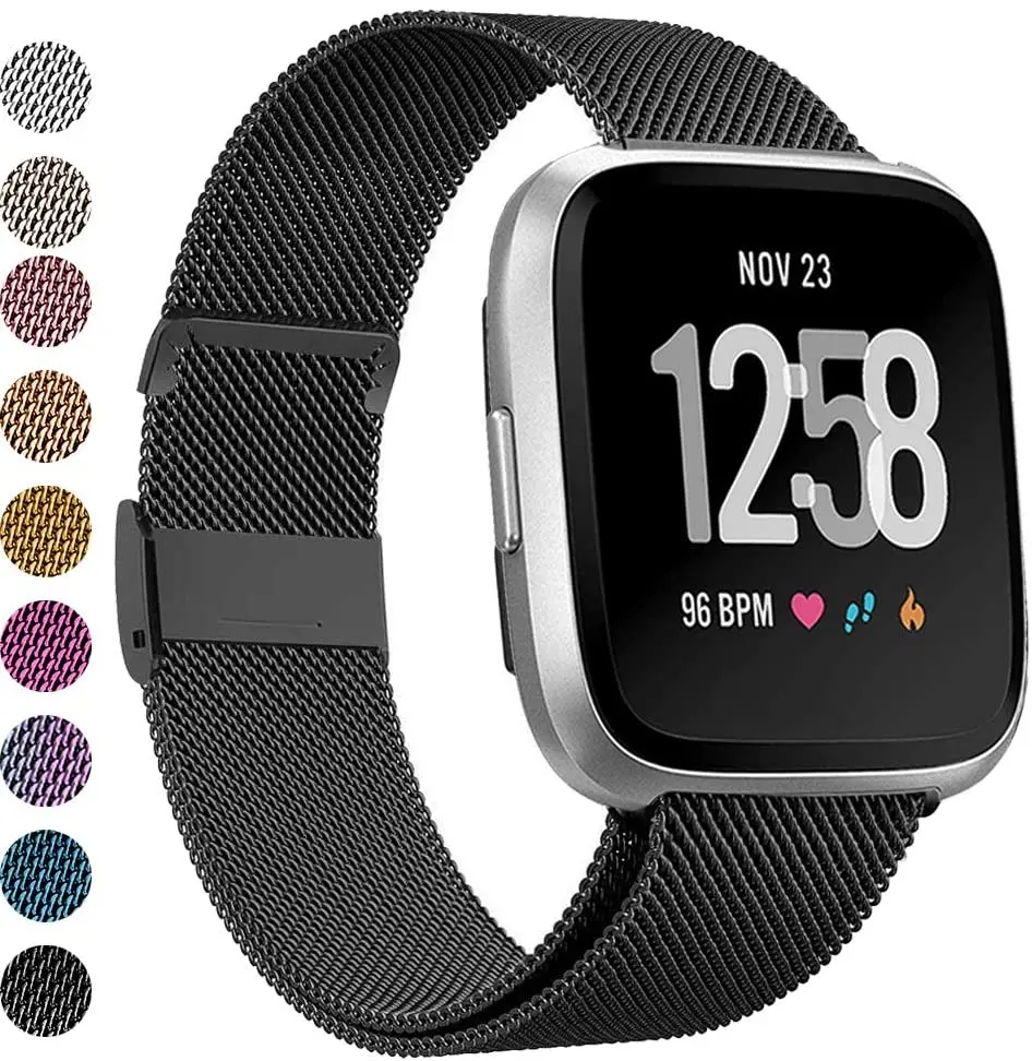 Браслет для часов Fitbit VersaVersa 2Versa LiteSE, металлический сетчатый Браслет из нержавеющей стали с магнитным замком, ремешок Миланская петля