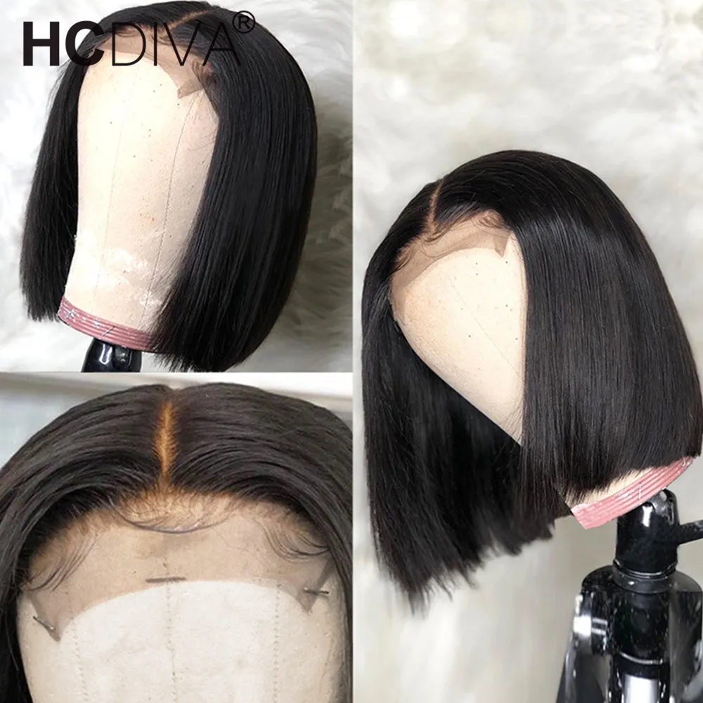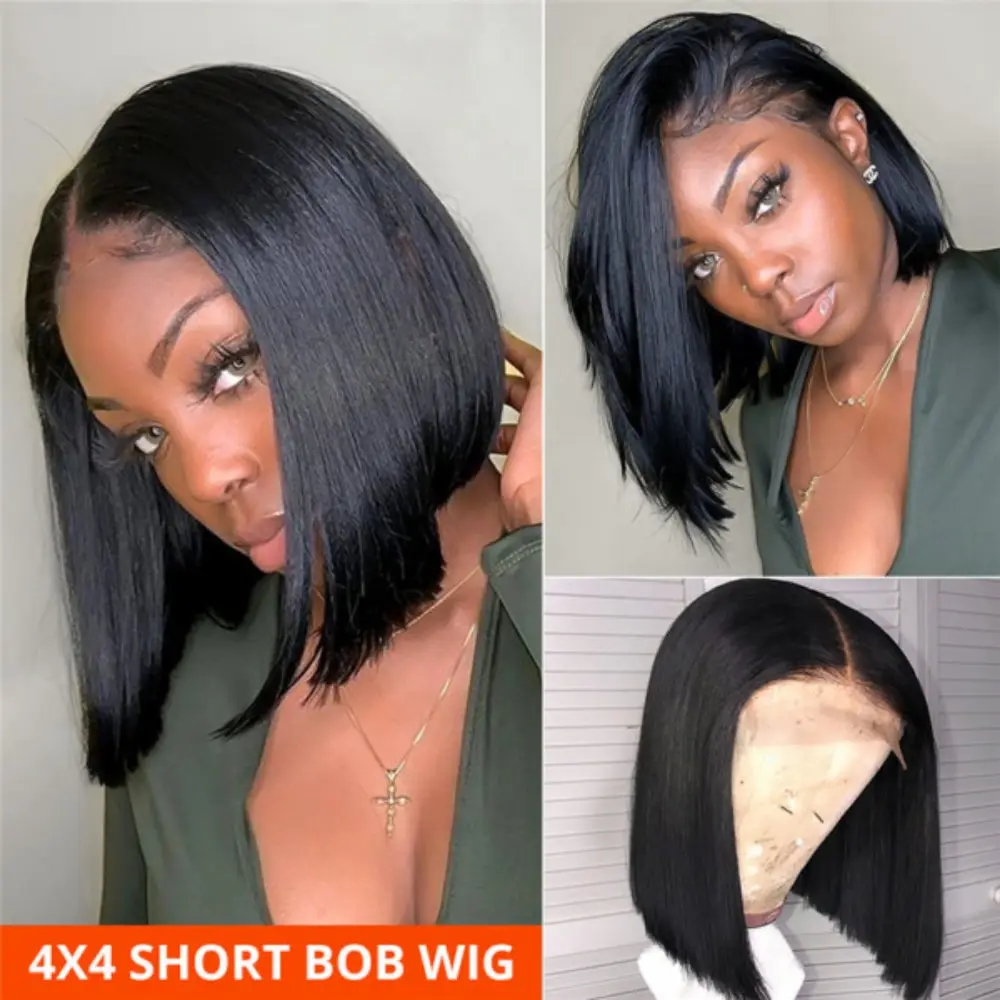 Короткие парики боб, прямые парики из человеческих волос с кружевной частью для женщин, предварительно выпрямленные Детские волосы, парик на сетке 4x4, парик на сетке без клея, парик на сетке Реми