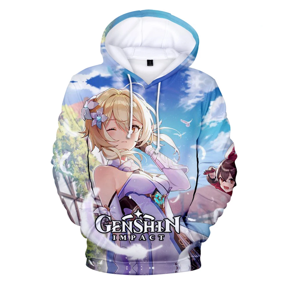 Толстовка с 3D принтом в стиле аниме и игры Genshin, уличная одежда для мужчин и женщин, Модный пуловер большого размера в стиле Харадзюку, пальто унисекс для девочек