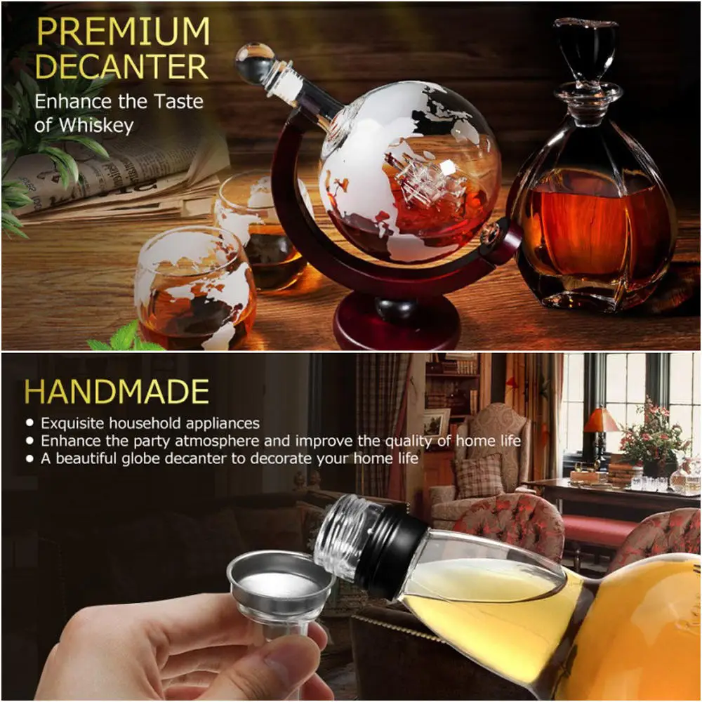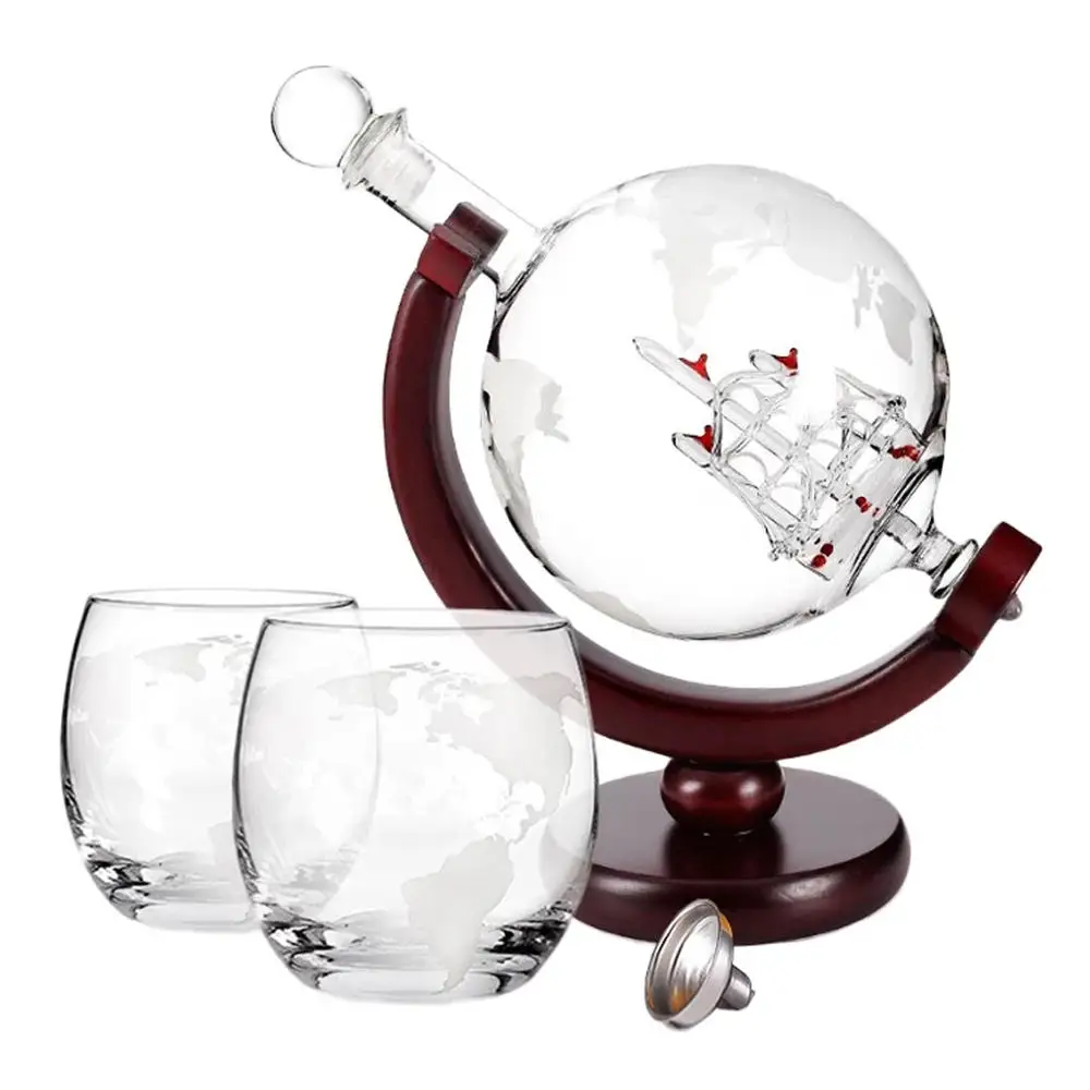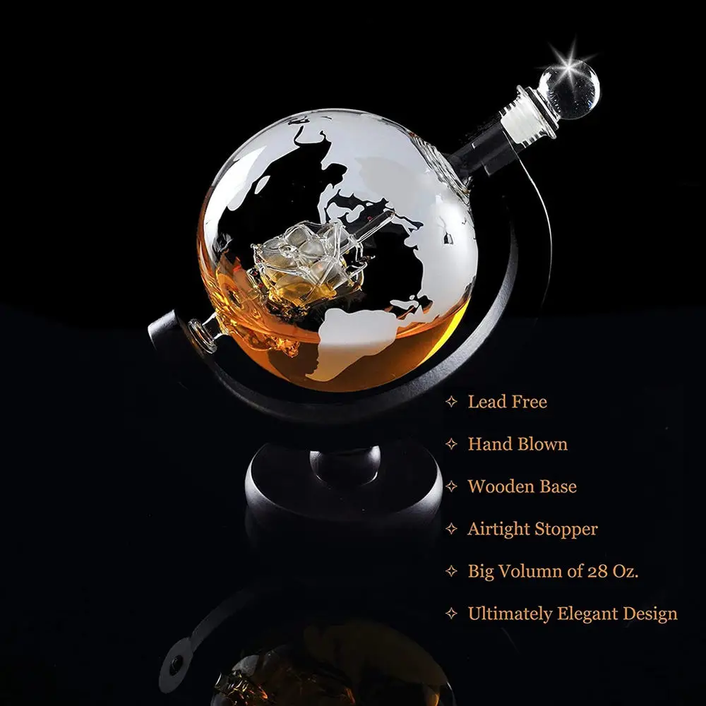 * Элегантный дозатор графинов для виски, выдуваемый вручную, с дизайном с гравированным глобусом и старинным кораблем в бутылке, несомненно, улучшит процесс питья, создавая смелые впечатления.* Отличный вариант для разговора на любой вечерние нке. Может также использоваться для подачи воды, сока, газировки, холодного чая и других напитков.Параметры графина:* Рисунок поверхности: карта мира* Внутреннее украшение: парусная лодка* Материал: боросиликатное стекло с высоким содержанием боросиликата (не лопнет при воздействии тепла)* Особенность: без свинца* Высота: прибл. 24 см* Диаметр: прибл. 12,5 см* Диаметр губ: прибл. 2,2 см* Емкость: 850 мл* Вес нетто: около. 240 гПараметр основания* Материал: сосна* Процесс: покраска* Вес: около. 170 гПараметр стекла* Материал: белое стекло* Высота: прибл. 8,5 см* Ширина: прибл. 8,5 см* Диаметр губ: прибл. 7 смПосылкаВариант 1:* 1 графин* 1 х ВоронкаВариант 2:* 1 графин* 1 х Воронка* 2 ОчкиПримечание:1. Реальный цвет изделия может немного отличаться от изображения на сайте из-за многих факторов, таких как яркость вашего монитора и ярсветильник.2. Пожалуйста, допускайте небольшое отклонение из-за ручного измерения для данных.ПосылкаВариант 1:* 1 графин* 1 х ВоронкаВариант 2:* 1 графин* 1 х Воронка* 2 Очки