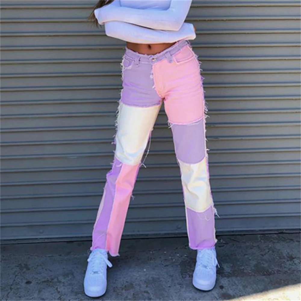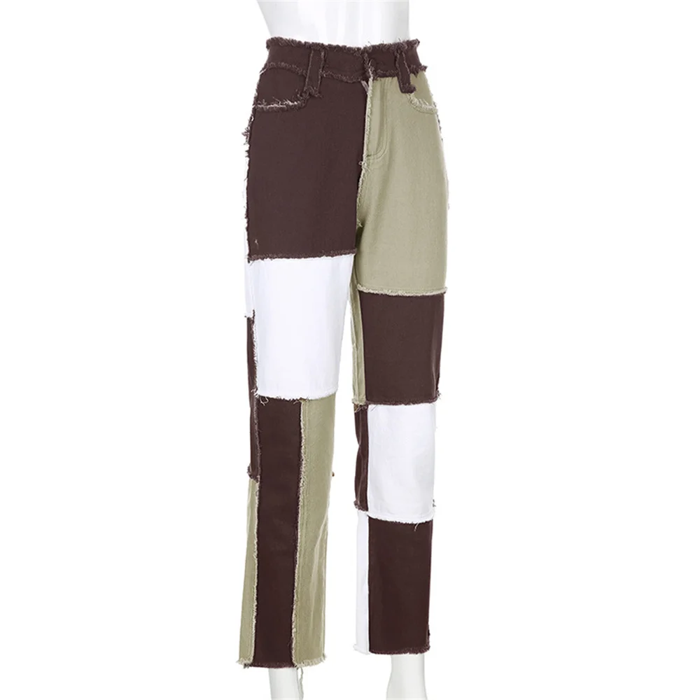 Новинка 2021, женские джинсы с завышенной талией и контрастной панелью, прямые джинсы в стиле хип-хоп с высокой талией, женские брюки, джинсы для женщин