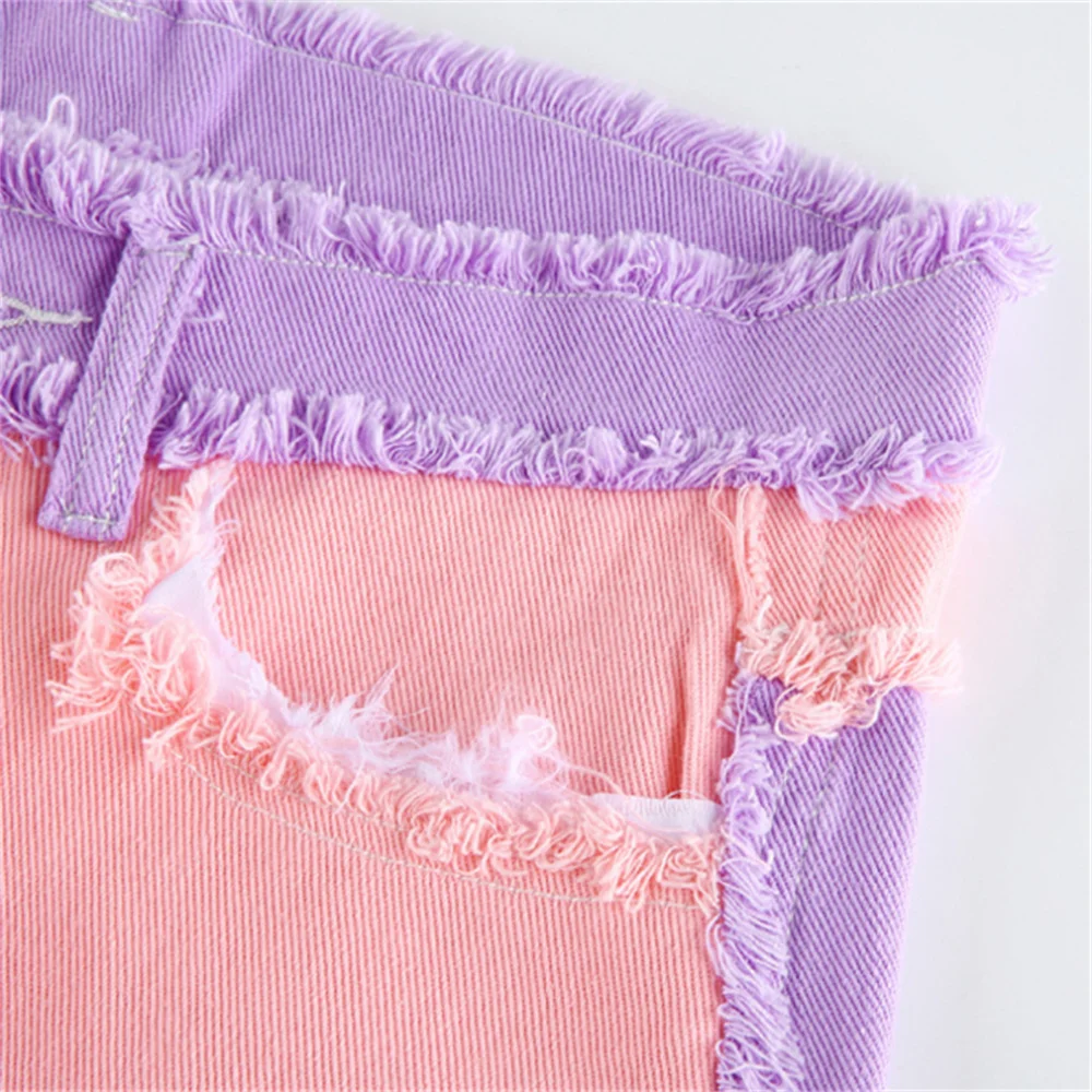 Джинсы женские прямые состаренные с высокой талией, розовые фиолето...