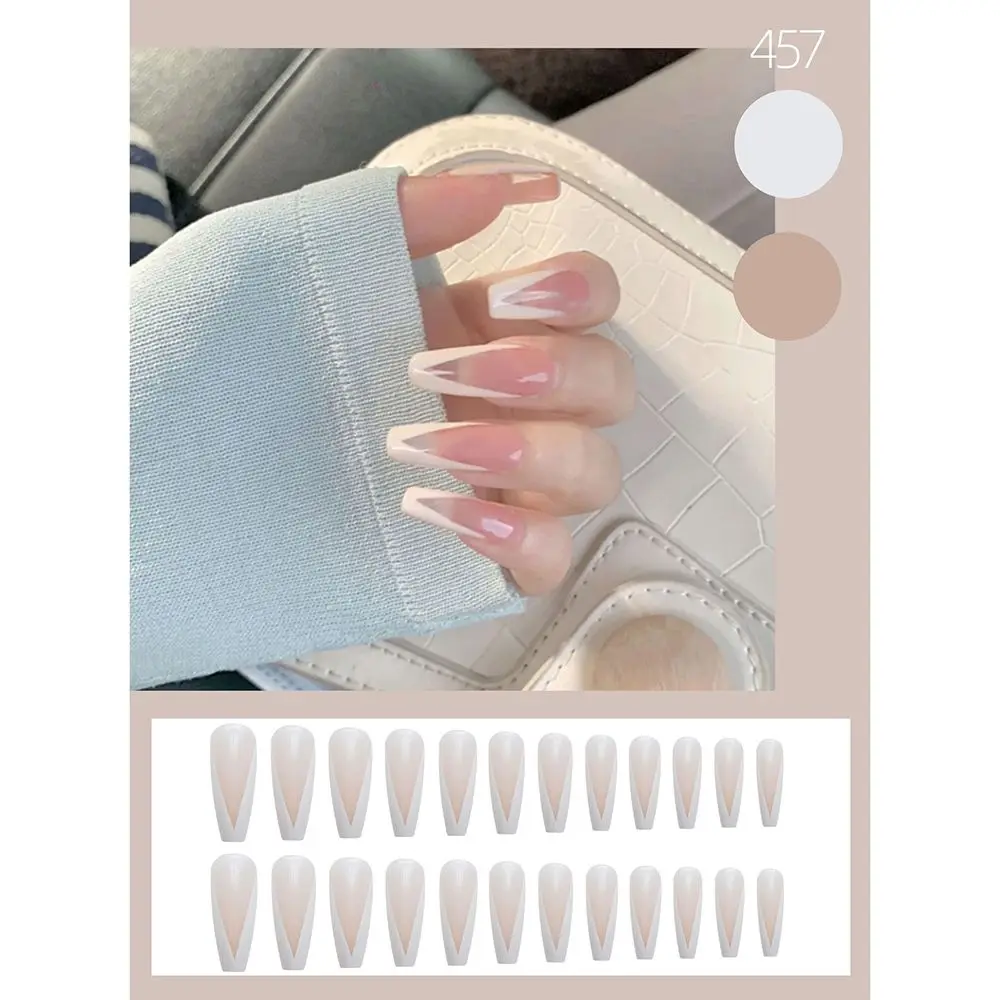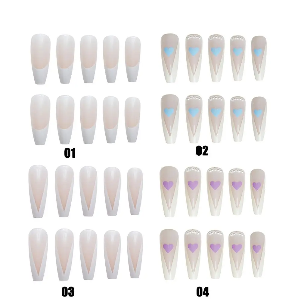 Искусственные французские накладные ногти, 24 шт., съемные длинные гробы, искусственные ногти с полным покрытием, накладные ногти с клеем