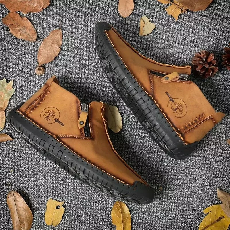 Мужские кожаные ботинки, теплые ботинки до щиколотки, уличные водон...
