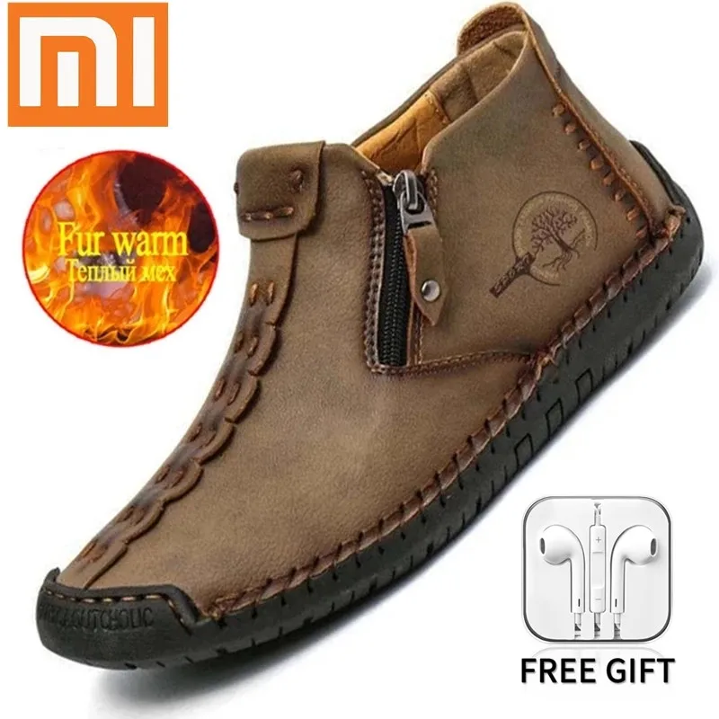 Мужские ботинки Xiaomi теплые зимние ботинки кожаные осенние мужски...
