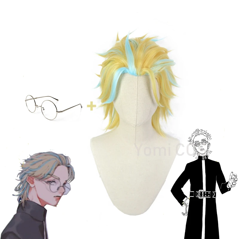 Парик для косплея Риндо хайтани из аниме Токио, с короткими волосами золотисто-синего цвета, с очками из синтетического волокна, шапочка для Хэллоуина