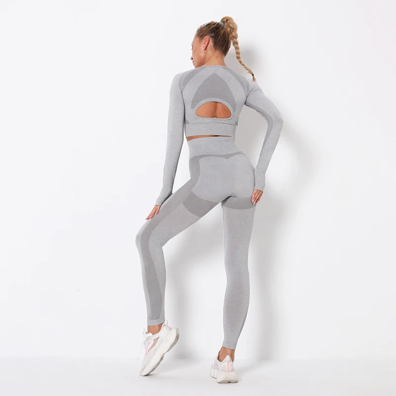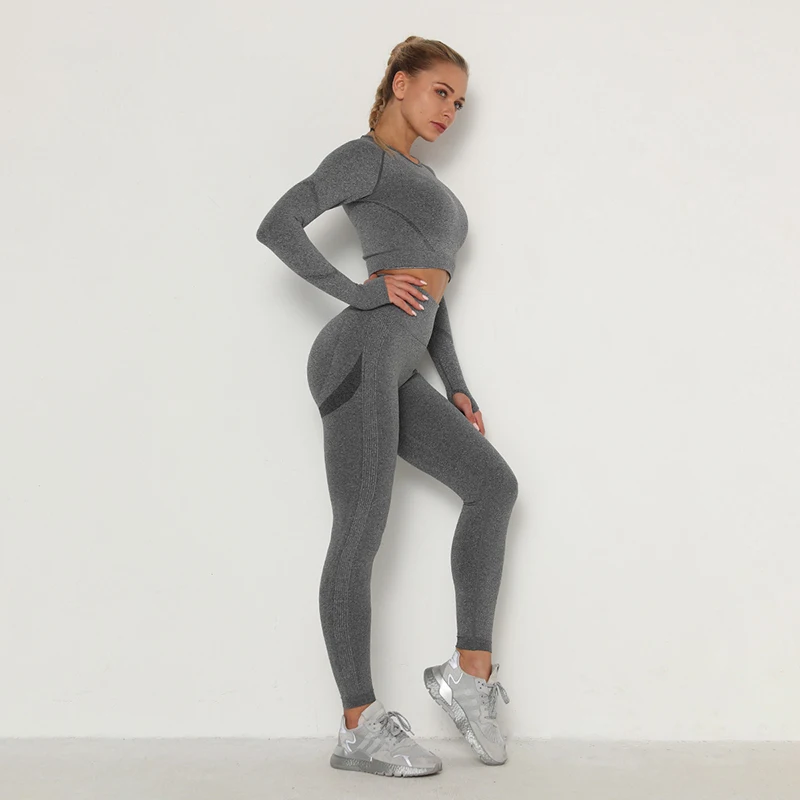 Комплект Спортивный женский из топа и леггинсов, бесшовный, с длинн...