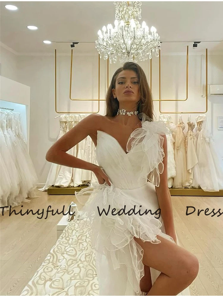Богемное свадебное платье Thinyfull, с открытым плечом, с коротким вырезом, Пляжное свадебное платье, трапециевидного силуэта, халат принцессы