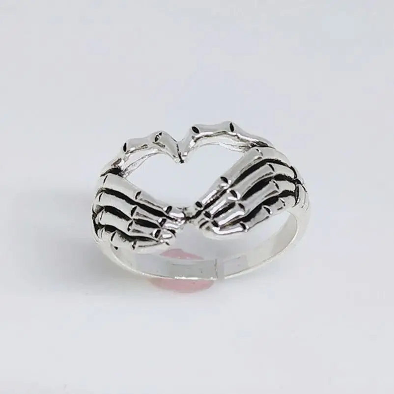 Посеребренные кольца с сердцем для мужчин, панк, готика, креативное кольцо скелеты пара, для женщин и мужчин, Хип-Хоп Группа ювелирные изделия, очаровательный подарок