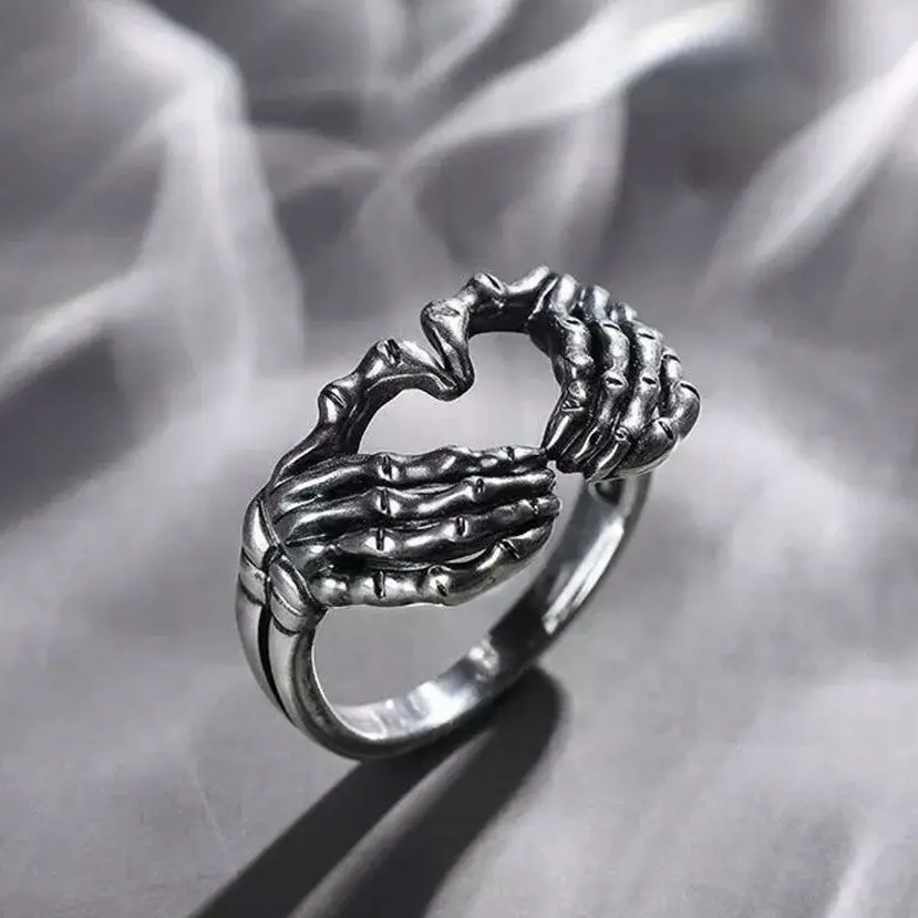 Винтажные готические креативные кольца в виде черепа, руки с сердце...