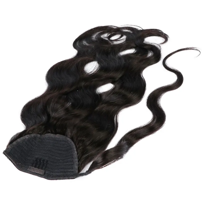 Волнистые человеческие волосы, конский хвост, бразильские волосы Remy, охватывающие клипсы в конский хвост, естественный цвет, 100 г, конский хвост