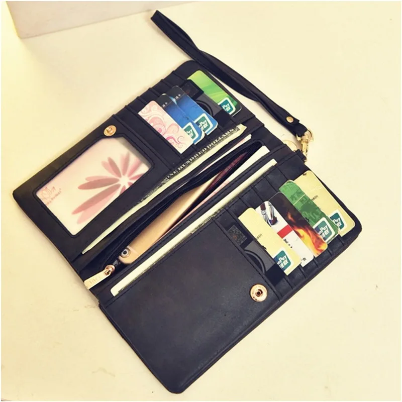 Вместительные женские кошельки, Матовый кожаный кошелек с двойной молнией, повседневный клатч, кошелек с ремешком на руку для монет, кошелек с держателем для карт