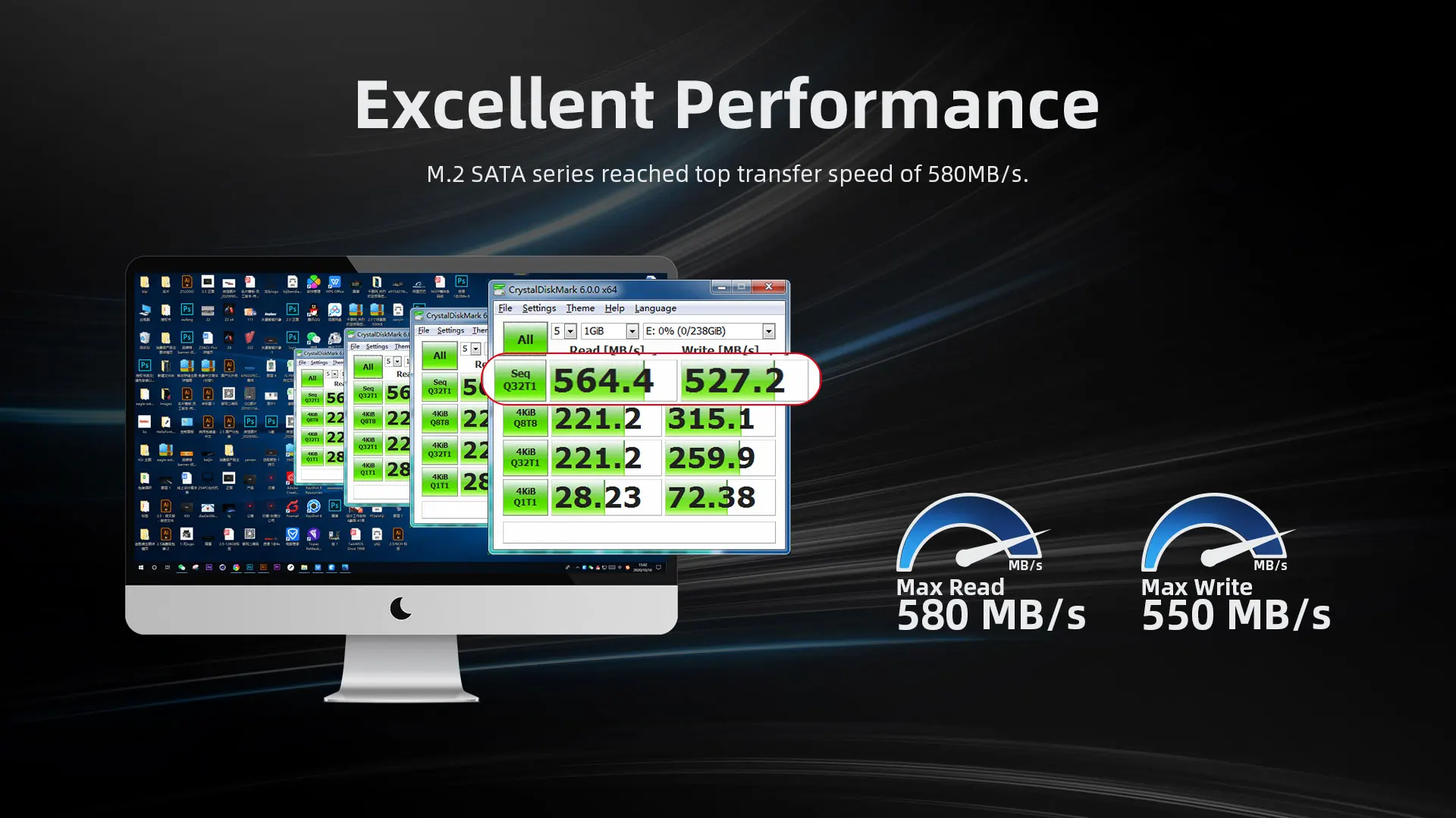 Работает очень хорошо, это быстрый диск. Очень хорошая коробка приходит. Очень аккуратно. Описание очень точное и полностью соответствует.