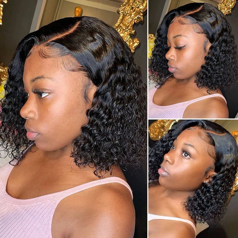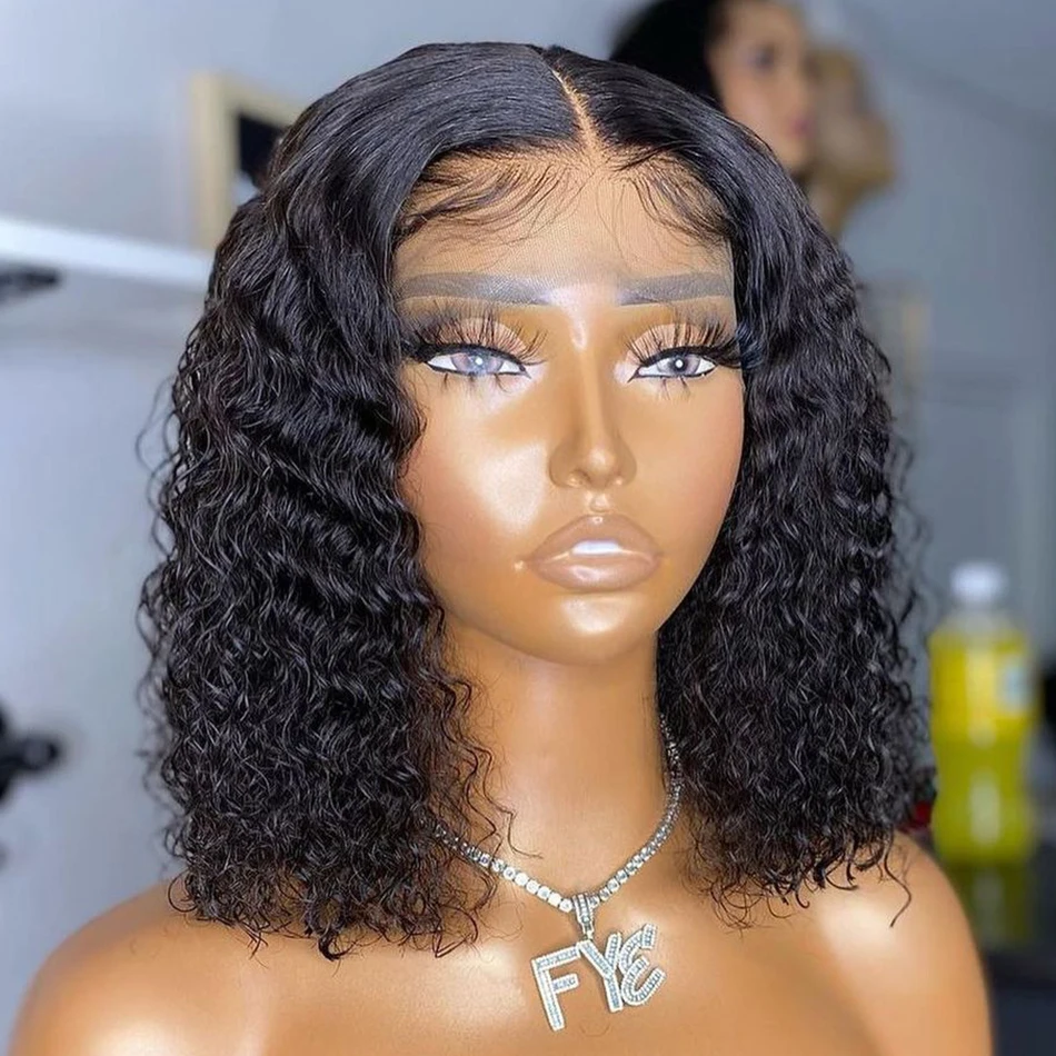 Недорогие бразильские Волнистые Короткие парики с застежкой Боб 4x4, парики из человеческих волос на сетке, волнистые вьющиеся парики боб для женщин, предварительно выщипанные парики на сетке