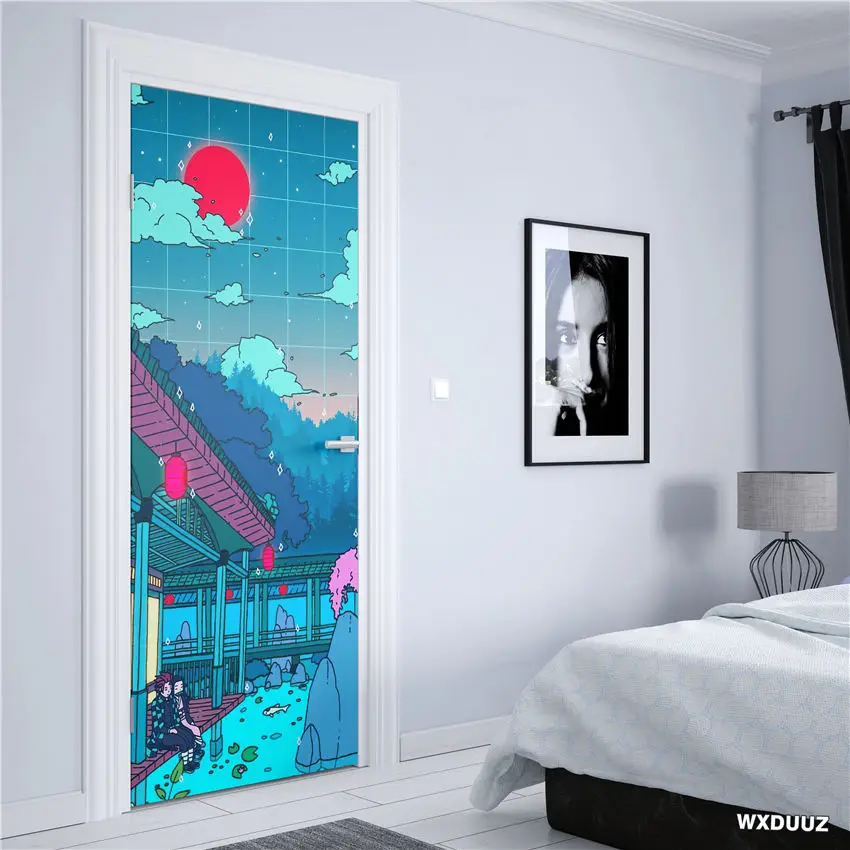 Наклейка на стену в японском стиле аниме убийца демонов, Моя геройская Академия, декоративная наклейка на дверь, домашний декор, плакаты, наклейка на стену