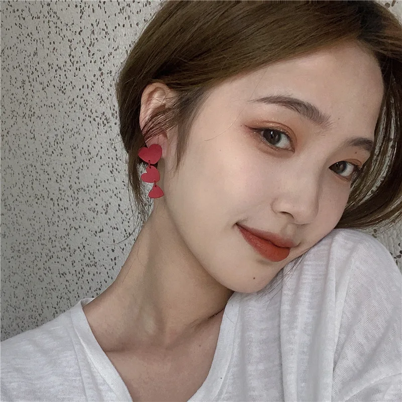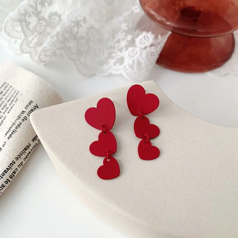 Элегантные милые серьги-подвески в форме сердца красного цвета для женщин зимние теплые красные искусственные рождественские подарки ювелирные изделия 2021 тренд