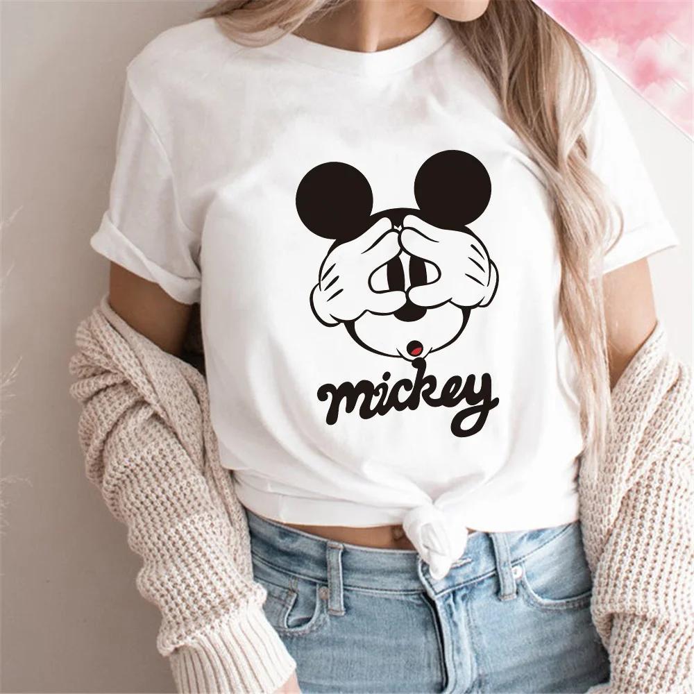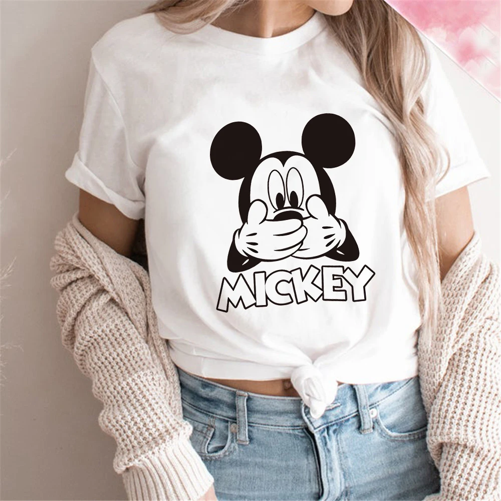 Женская футболка с принтом Микки Мауса, белая футболка с рисунком, ...