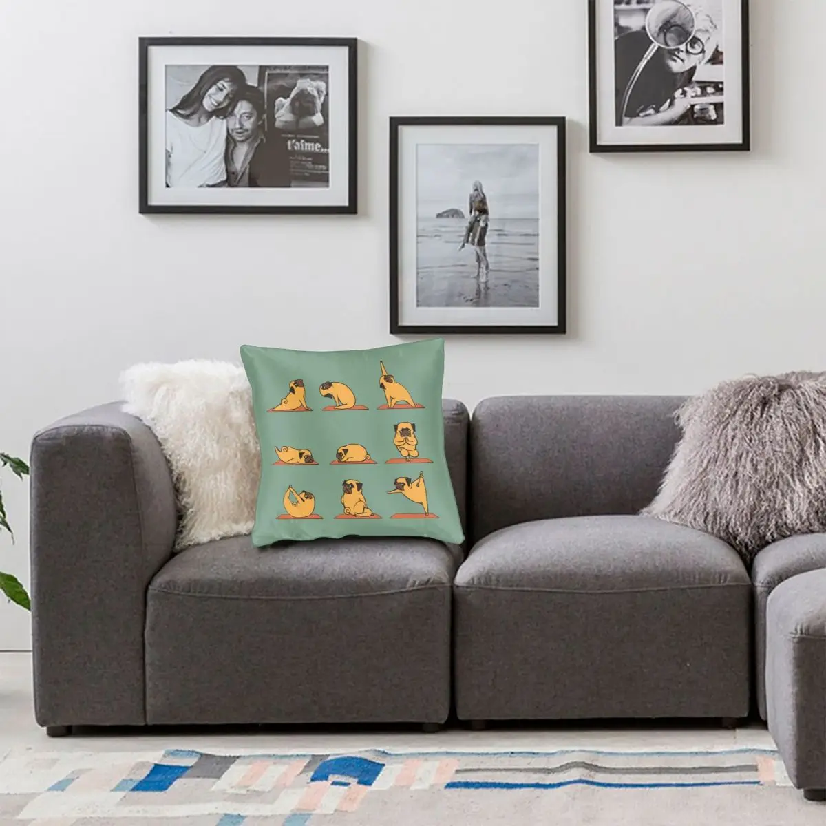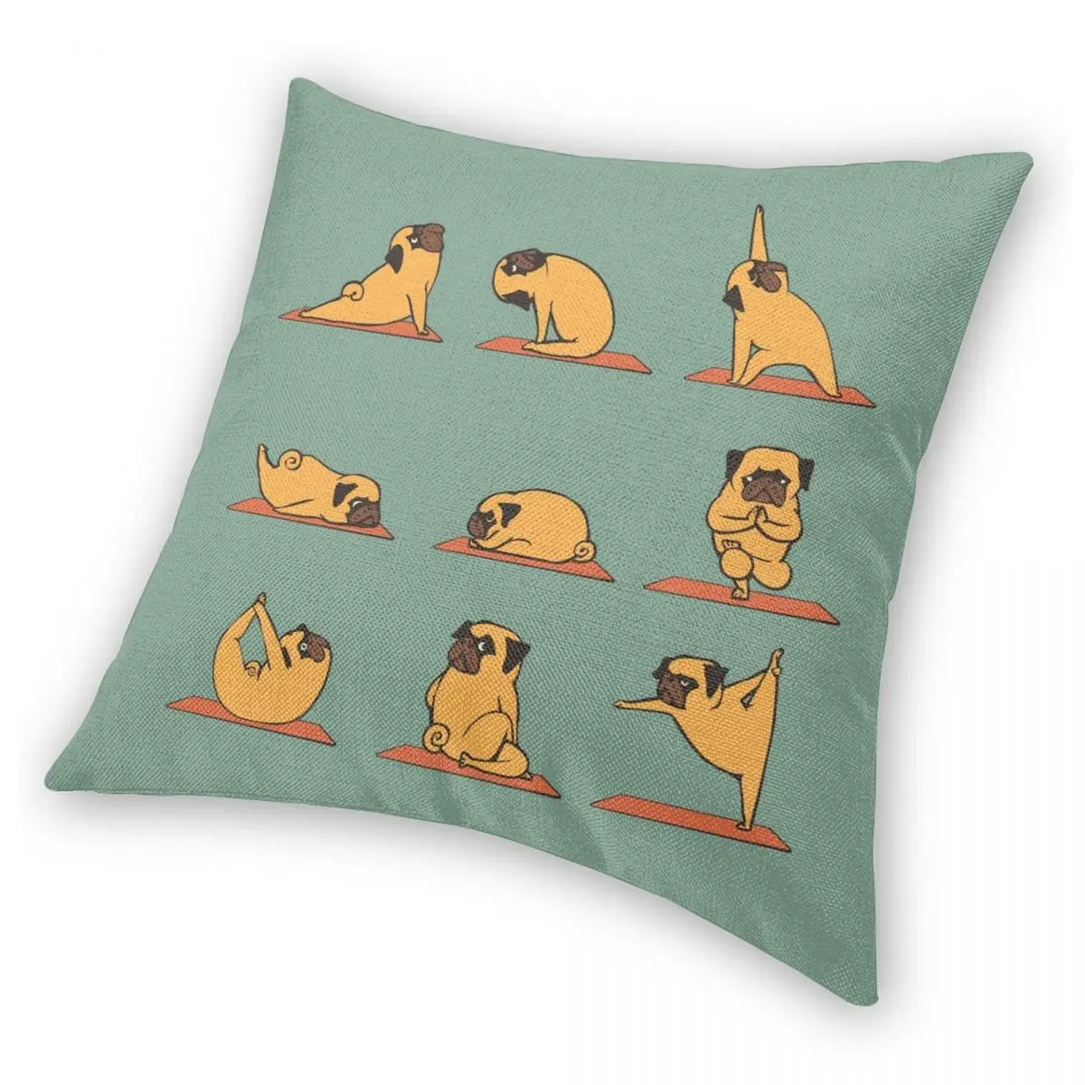 Квадратный чехол для подушки для мопса, йоги, полиэстеровый льняной бархатный креативный декоративный чехол для подушки на молнии, чехол для дивана, наволочка для подушки