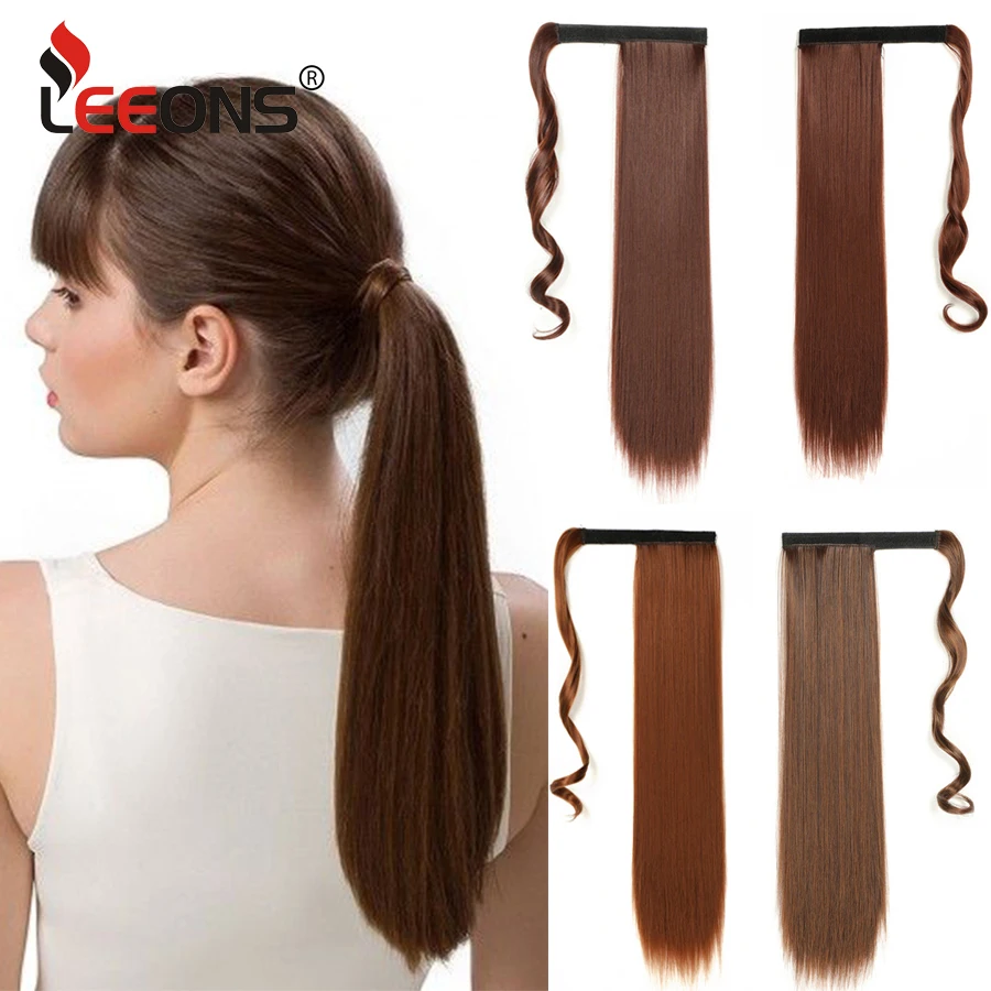Leeons Синтетические длинные прямые удлинители конского хвоста охватывающие волосы конский хвост с зажимом для конского хвоста шиньон для женщин