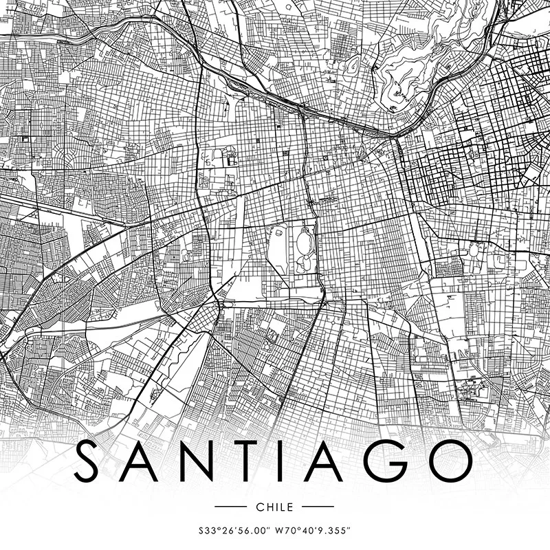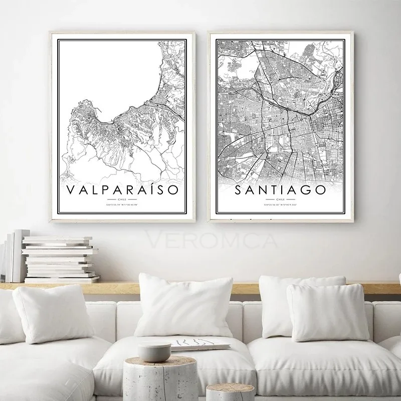 Плакат с картой города сантьяго чили, черно-белая печать, Карта города валпаризо, Картина на холсте, картина для дома и офиса, настенное художественное украшение