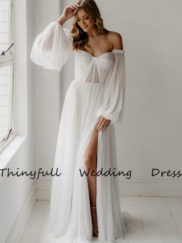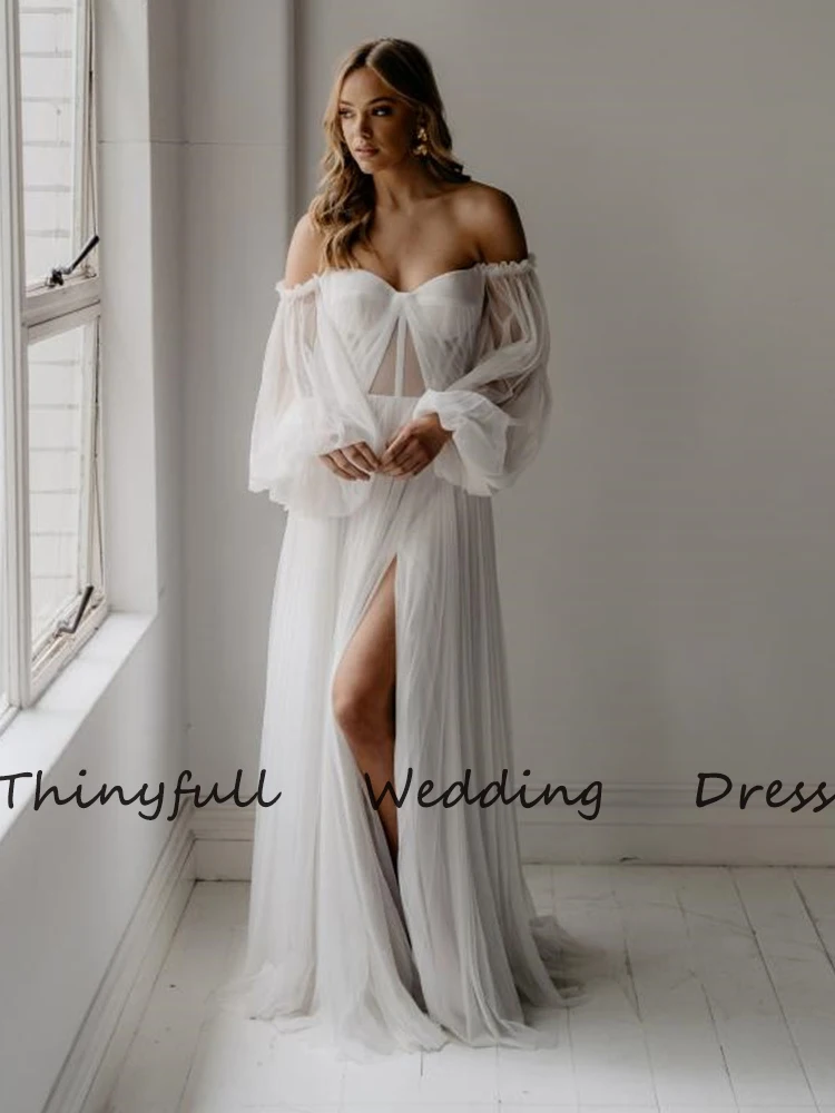 Женское свадебное платье в стиле бохо Thinyfull, простое Плиссированное пляжное платье-трапеция с разрезами по бокам, платье принцессы, невесты