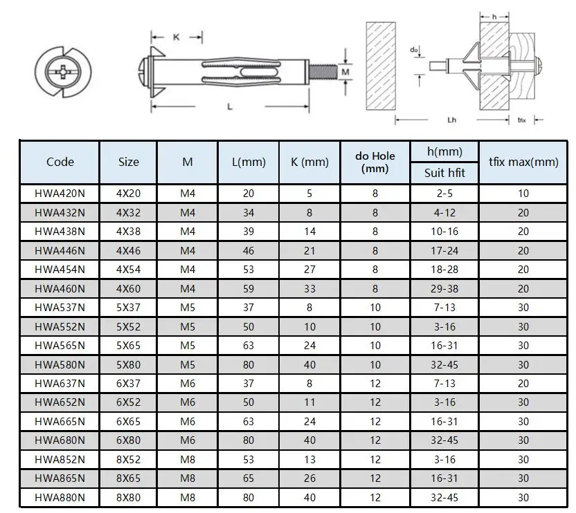 Полый настенный анкер-это полностью металлический, легкий, полость крепления для гипсокартона и других полых стеновых материалов.