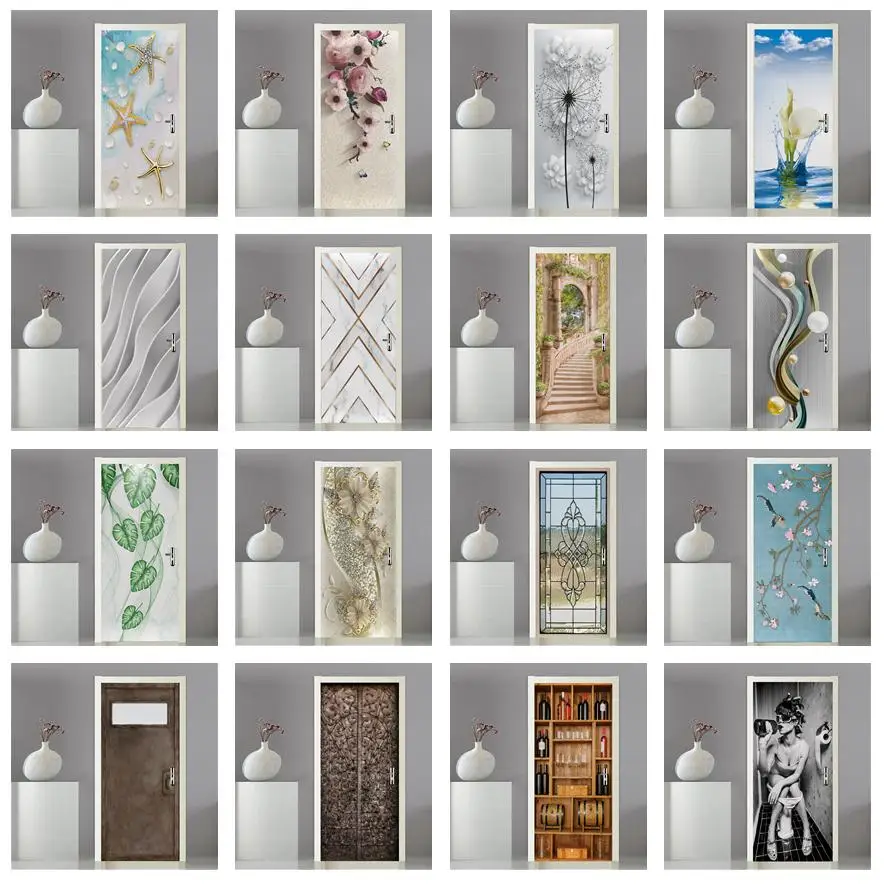 Самоклеящиеся 3D-наклейки на дверь в виде морских звезд, цветов, коридора, спальни