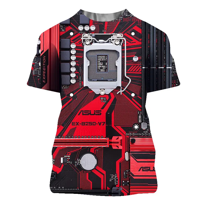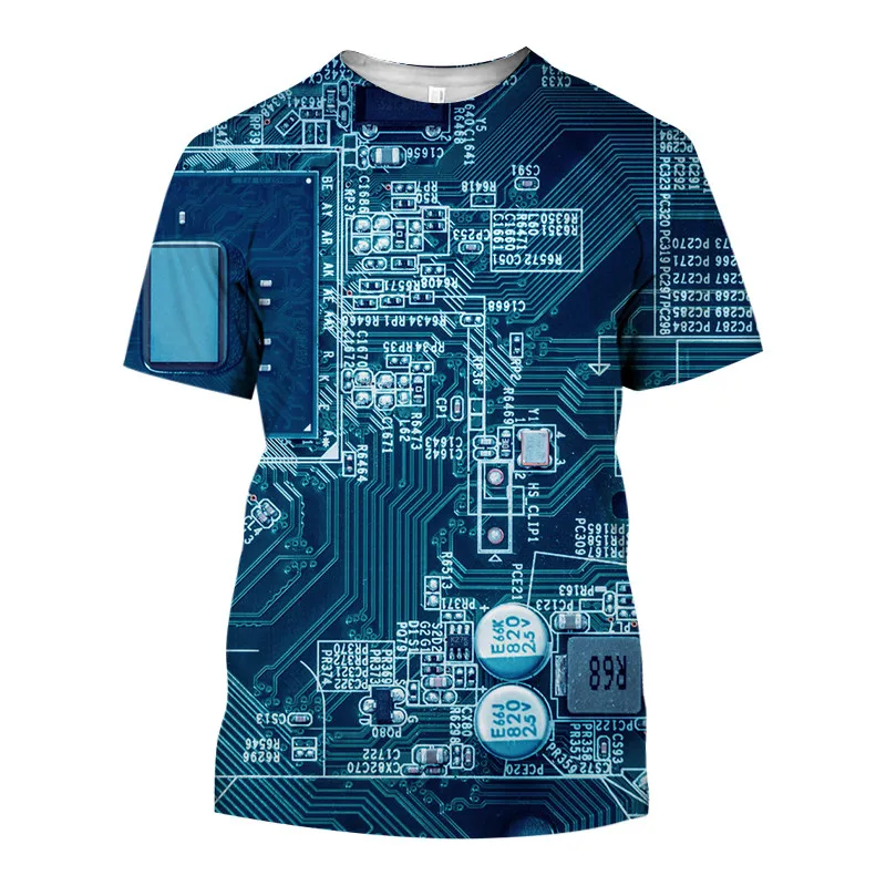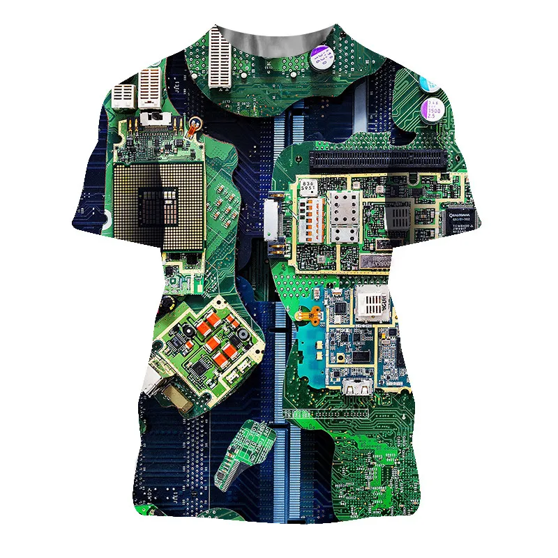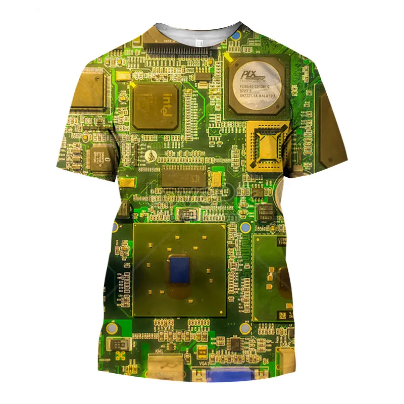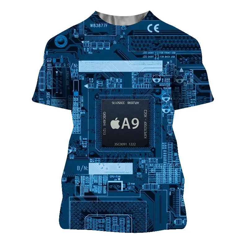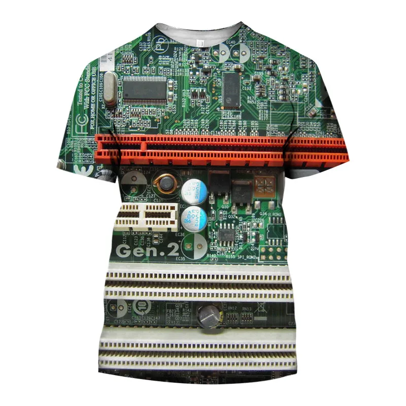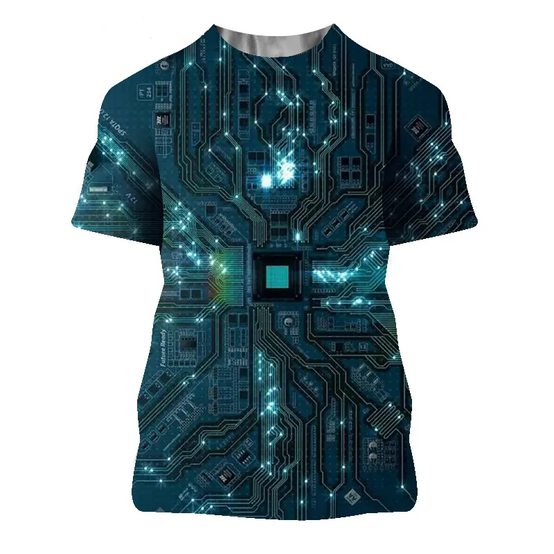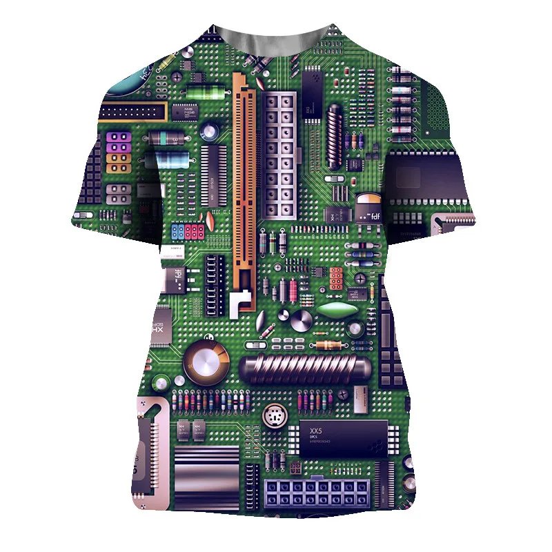Новая футболка с электронным чипом материнской платы для мужчин и ж...