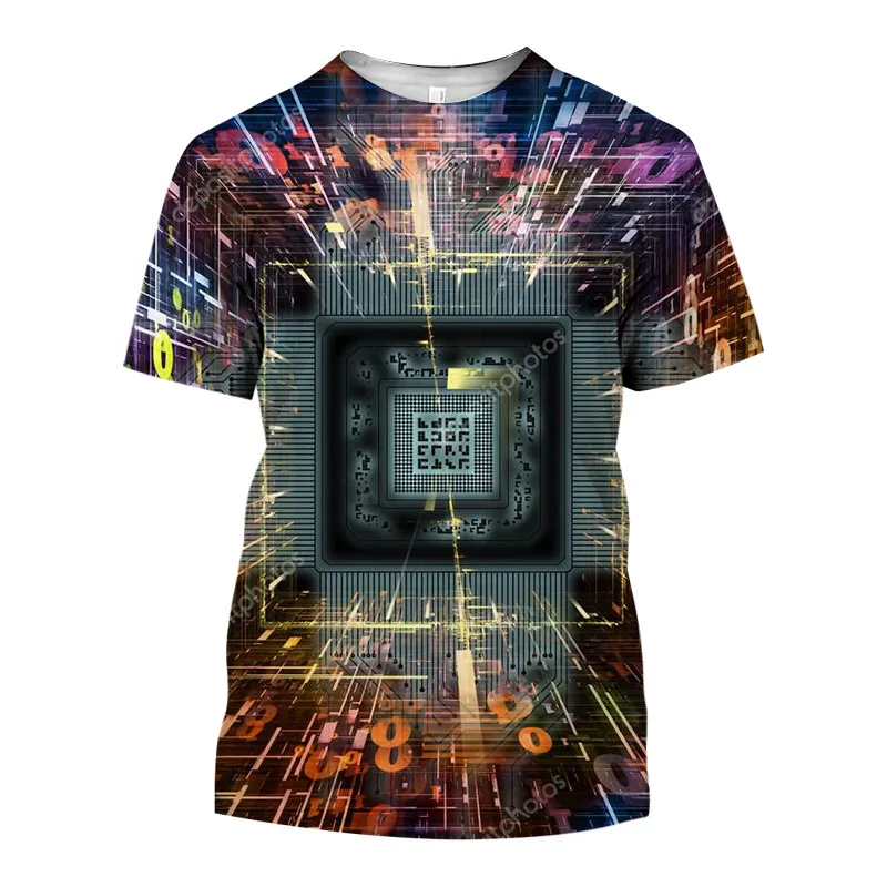 Новинка 2021, футболка с 3D принтом электронных чипов, модные повсе...
