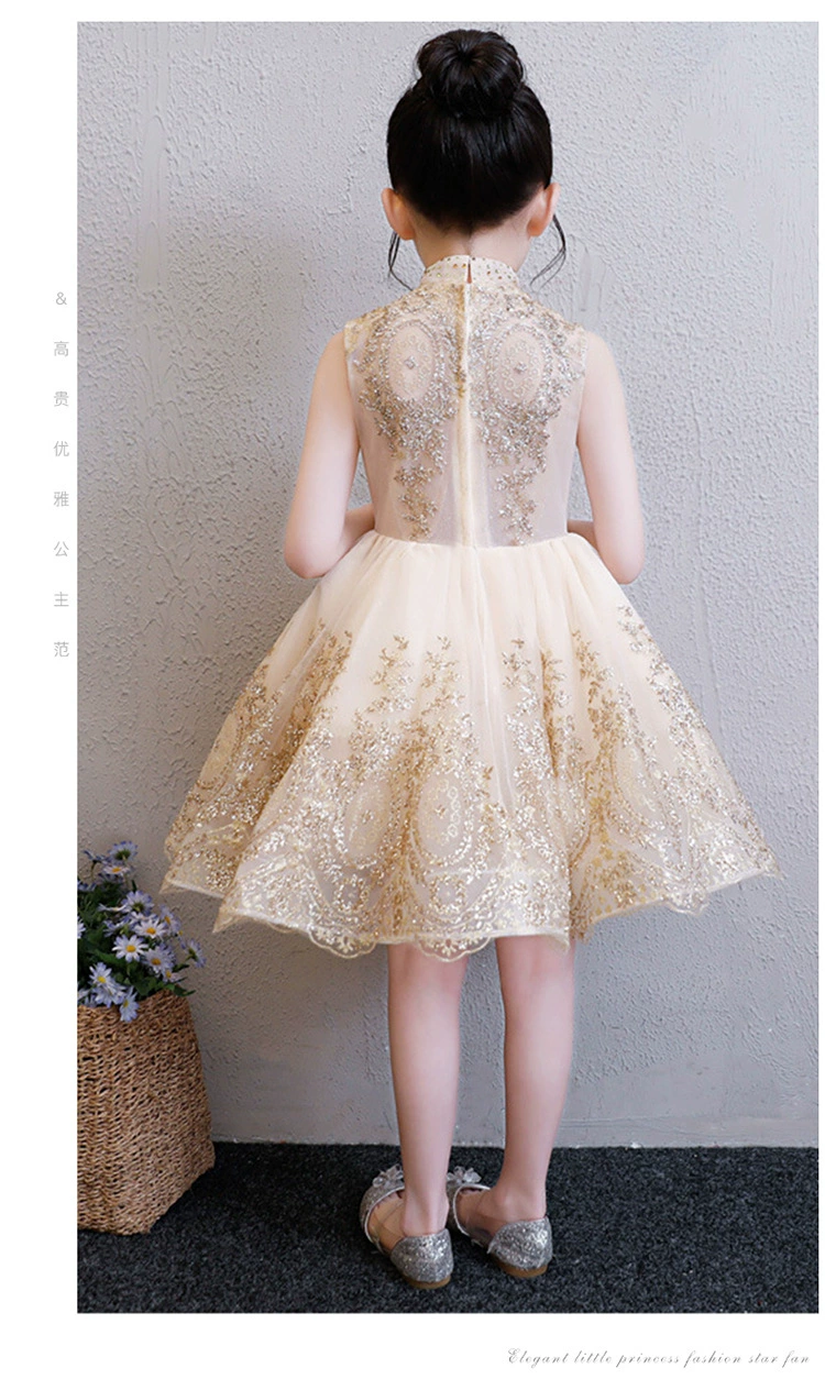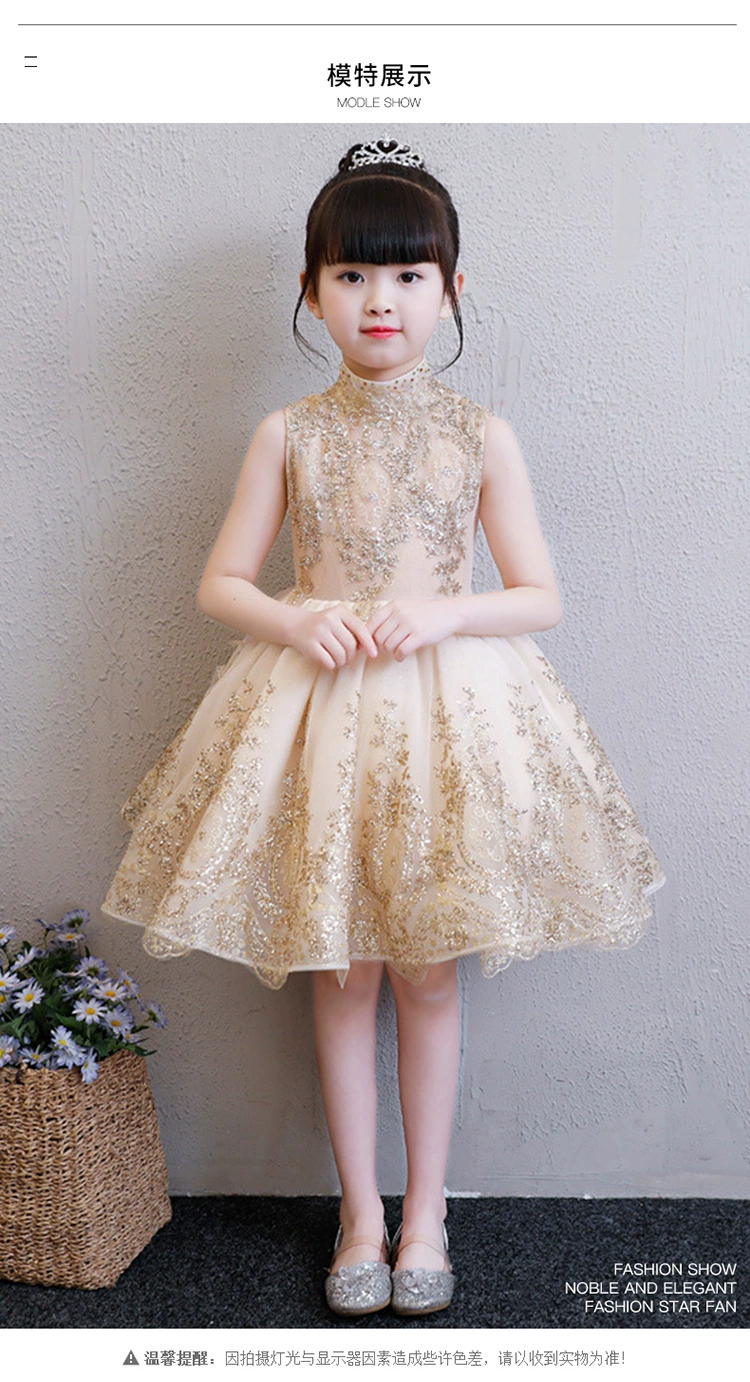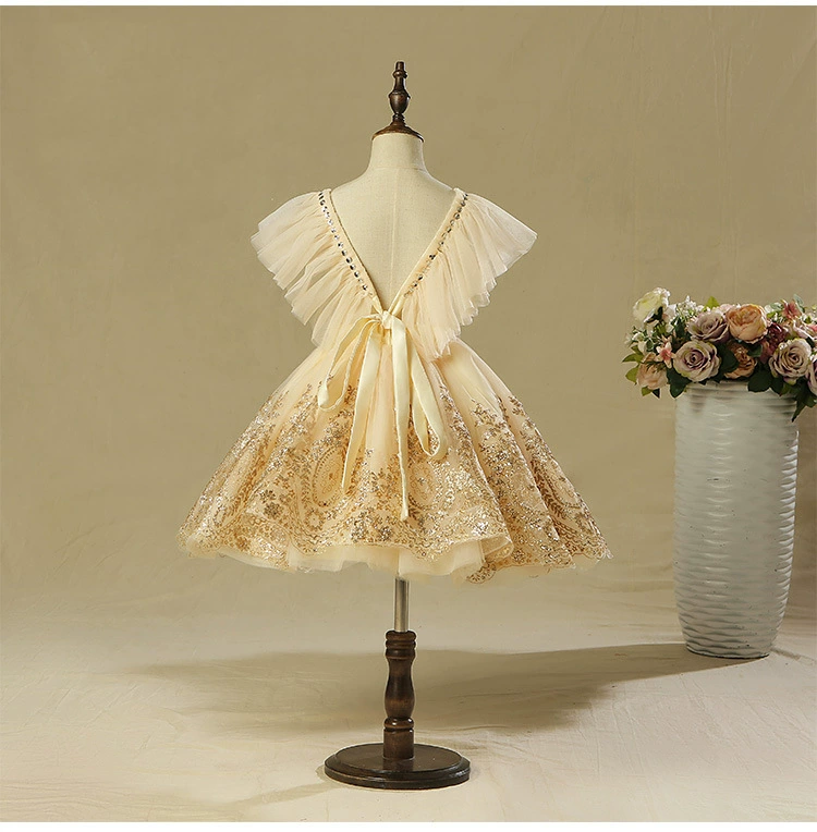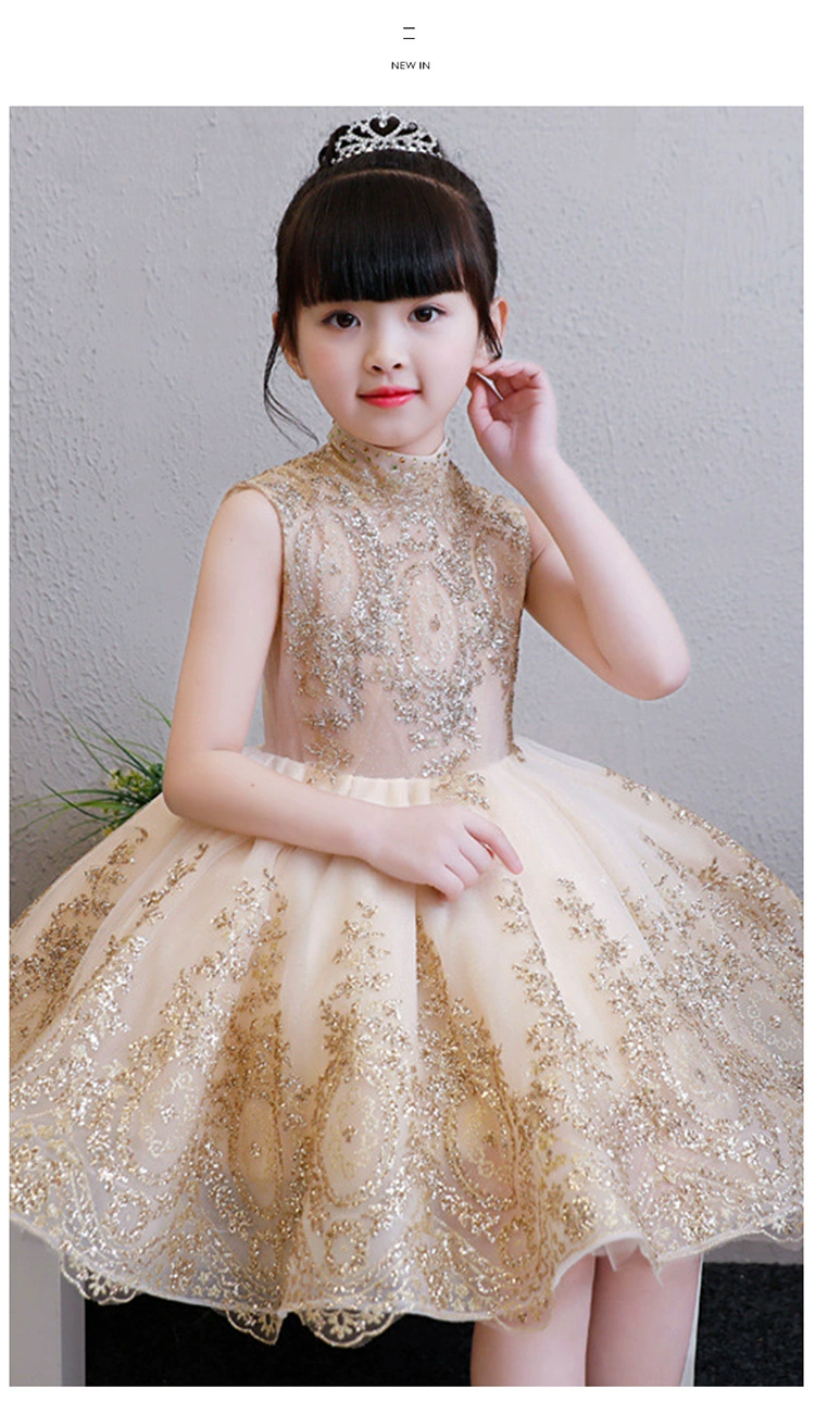 Роскошное детвечерние вечернее платье 2021, свадебное платье для девочек, вечернее платье без рукавов с золотыми блестками, платье на День святого Валентина, украшение