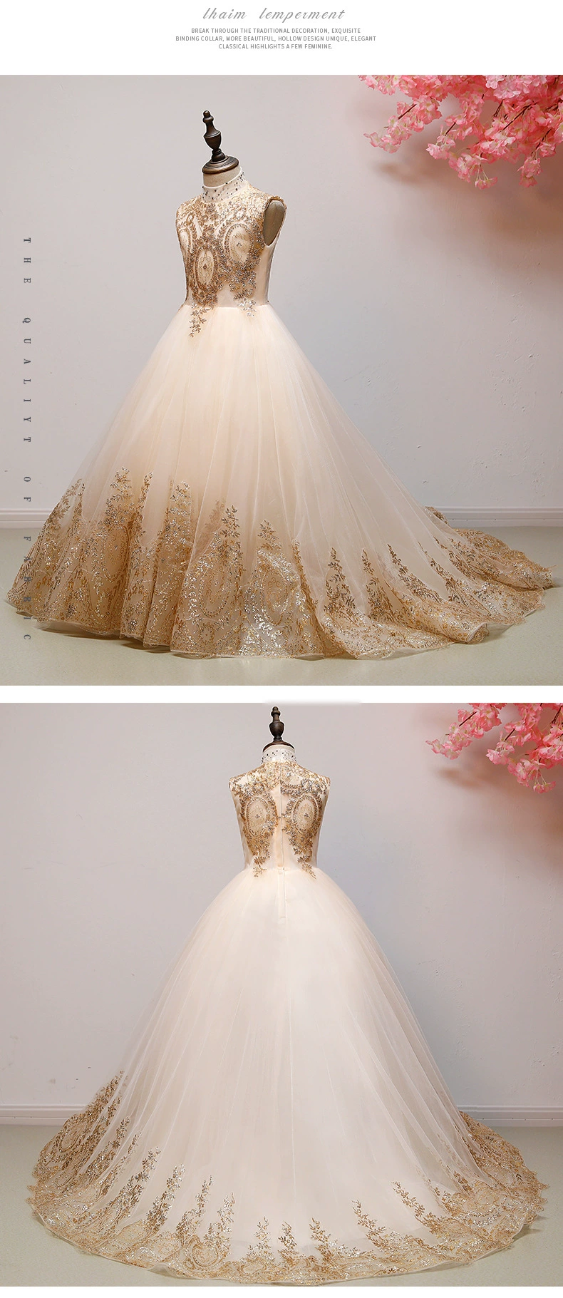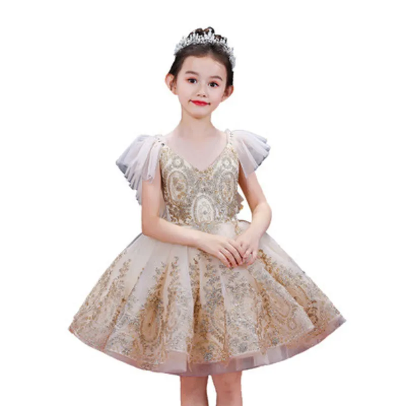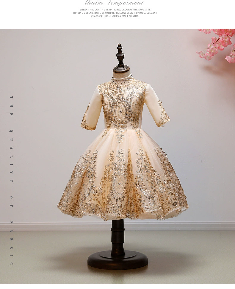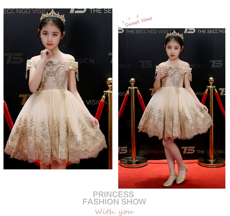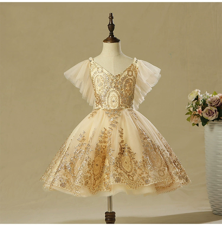 Роскошное детвечерние вечернее платье 2021, свадебное платье для девочек, вечернее платье без рукавов с золотыми блестками, платье на День святого Валентина, украшение