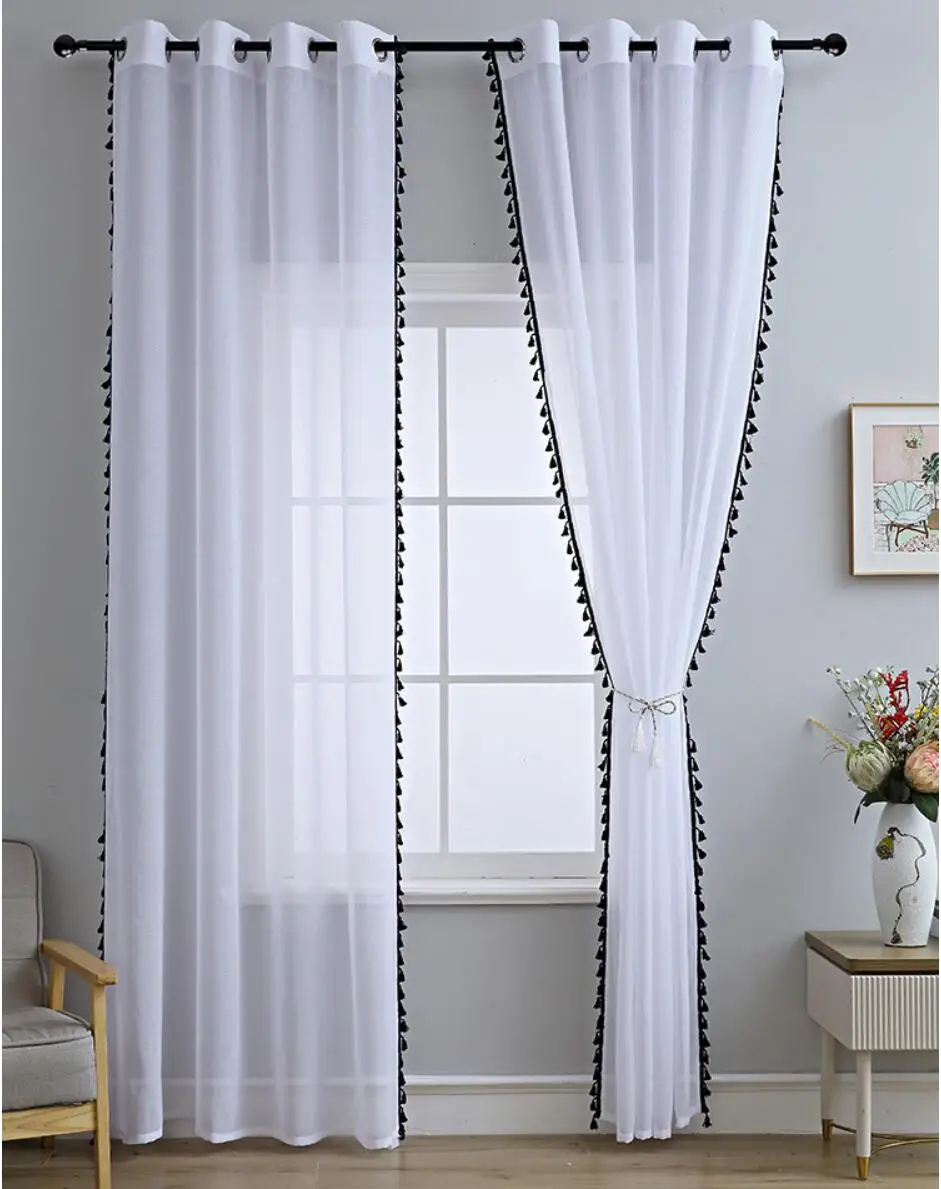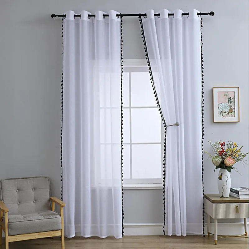 Чистые белые черные тюлевые короткие шторы для окна, кухни, готовые прозрачные шторы для гостиной, спальни, балкона, прозрачные жалюзи