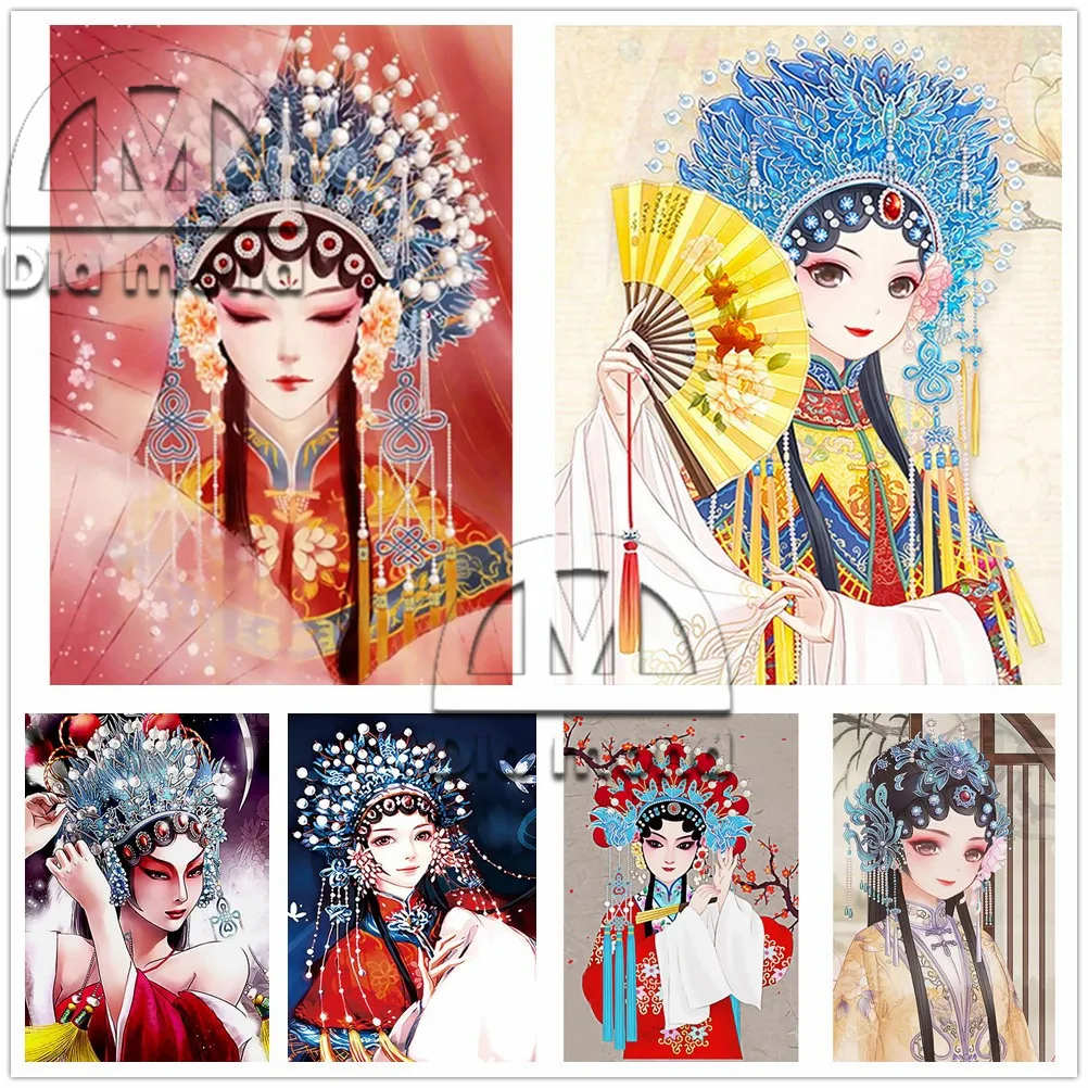 5D Diy алмазная живопись, Китайская Пекинская опера, девушка, полная вышивка, алмазная вышивка, вышивка крестиком, мозаика, искусство